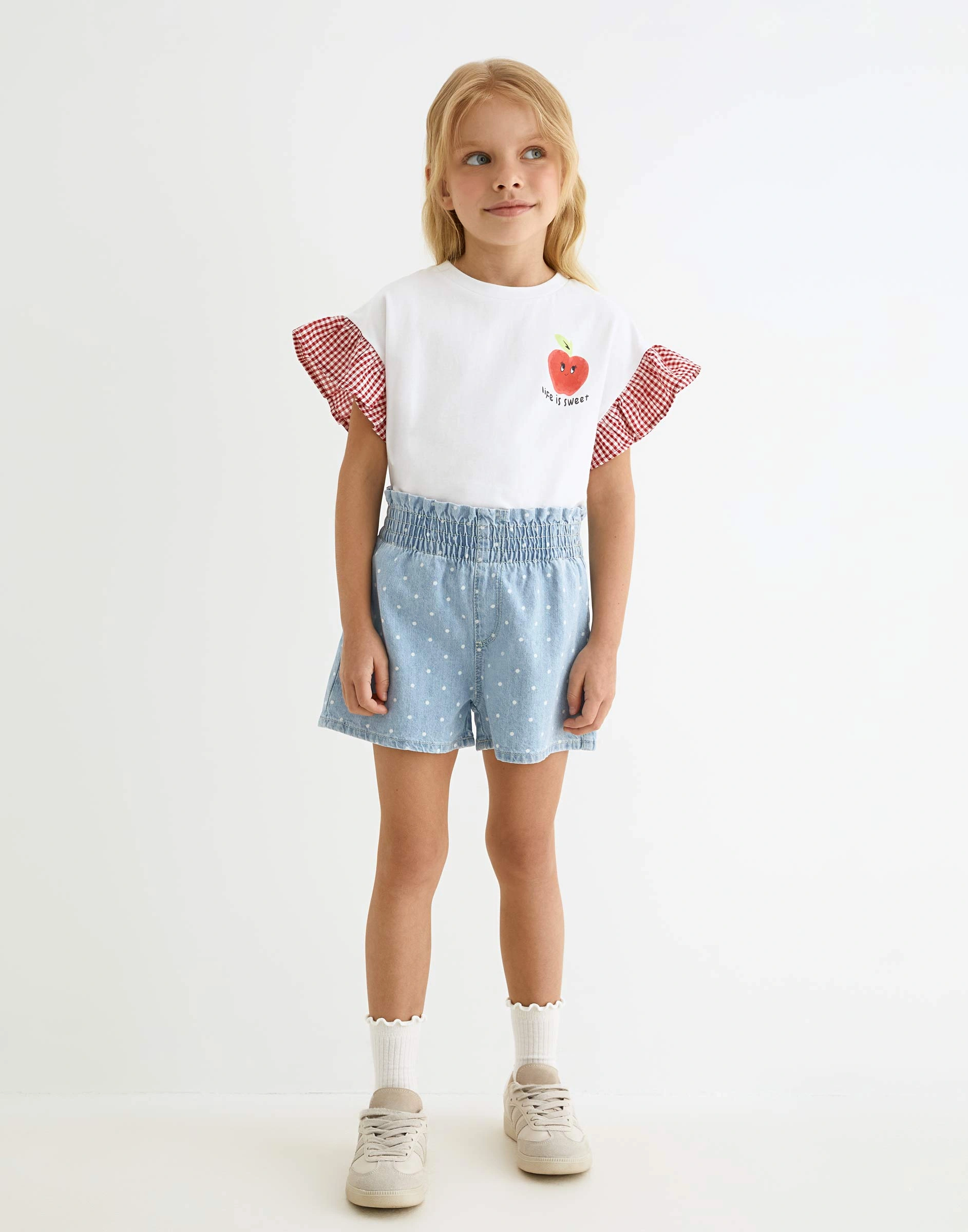 Джинсовые шорты с эластичным поясом и принтом для девочки Gsh013009-1