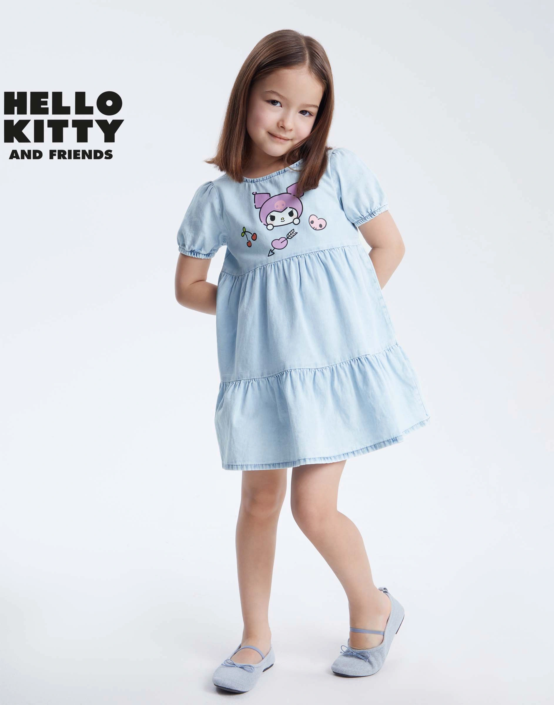 Многоярусное джинсовое платье с принтом Kuromi для девочки Gdr030124-1