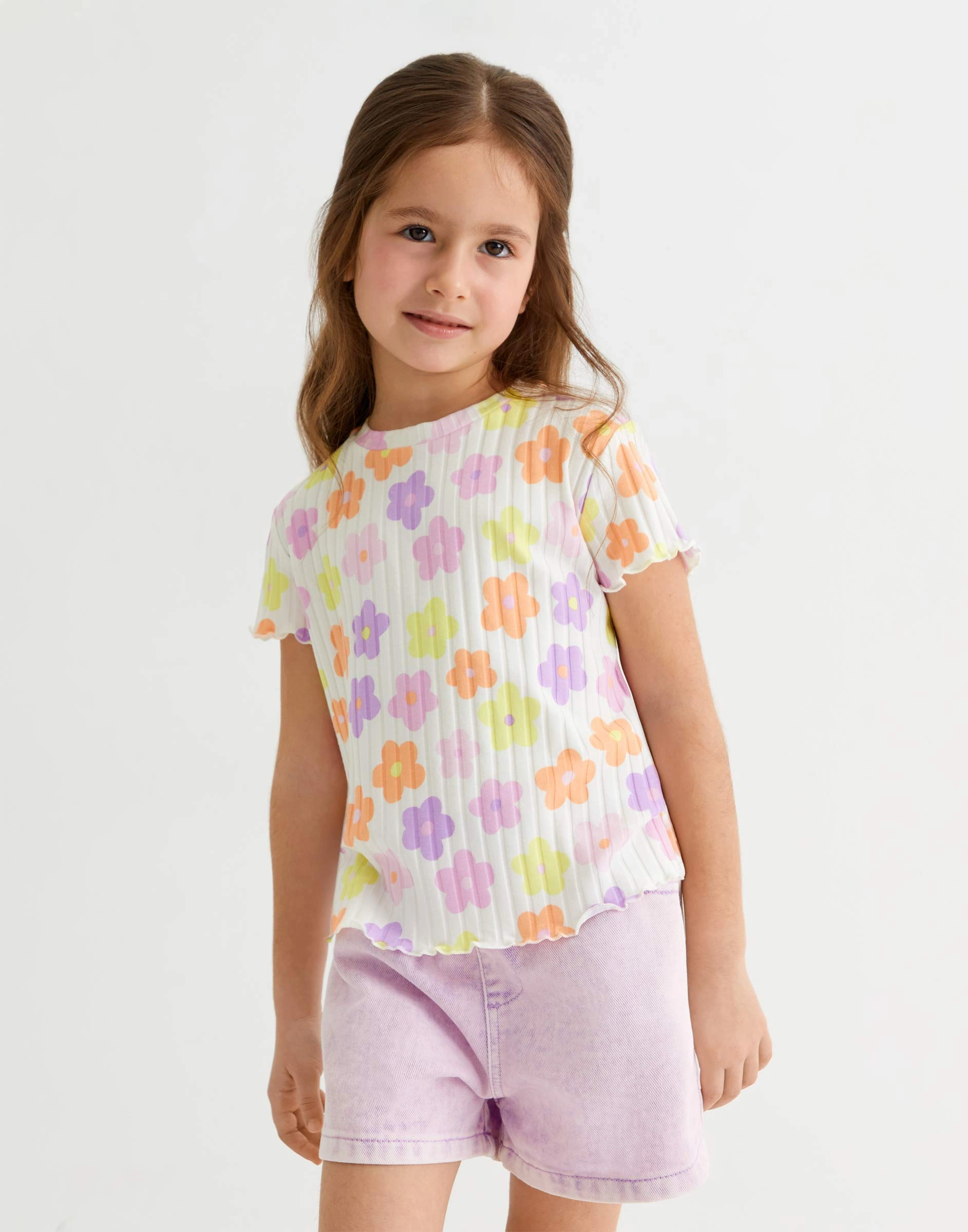 Молочная облегающая футболка с принтом для девочки Gkt027033-1