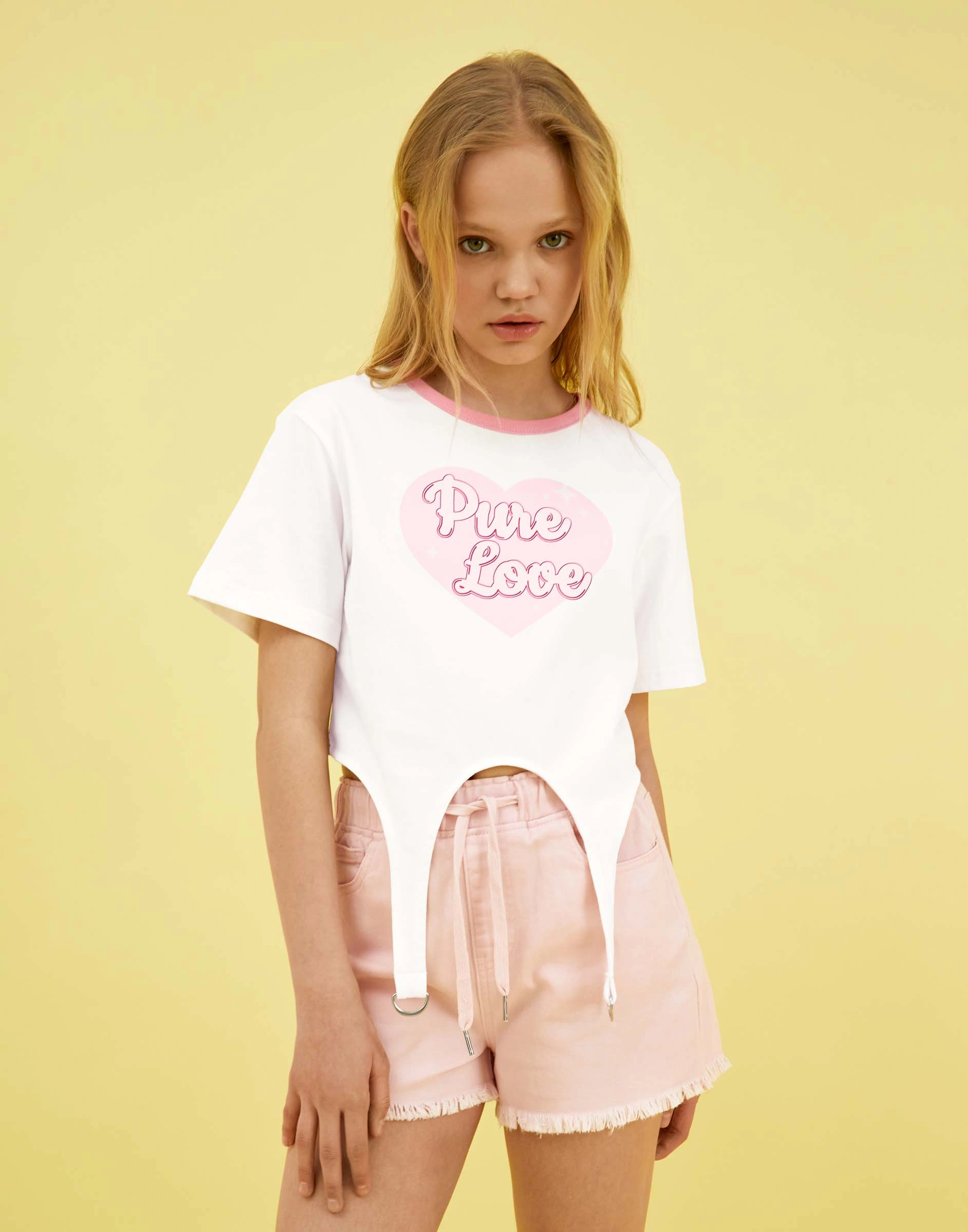 Молочный кроп-топ с принтом и имитацией подвязок Gkt026968-2