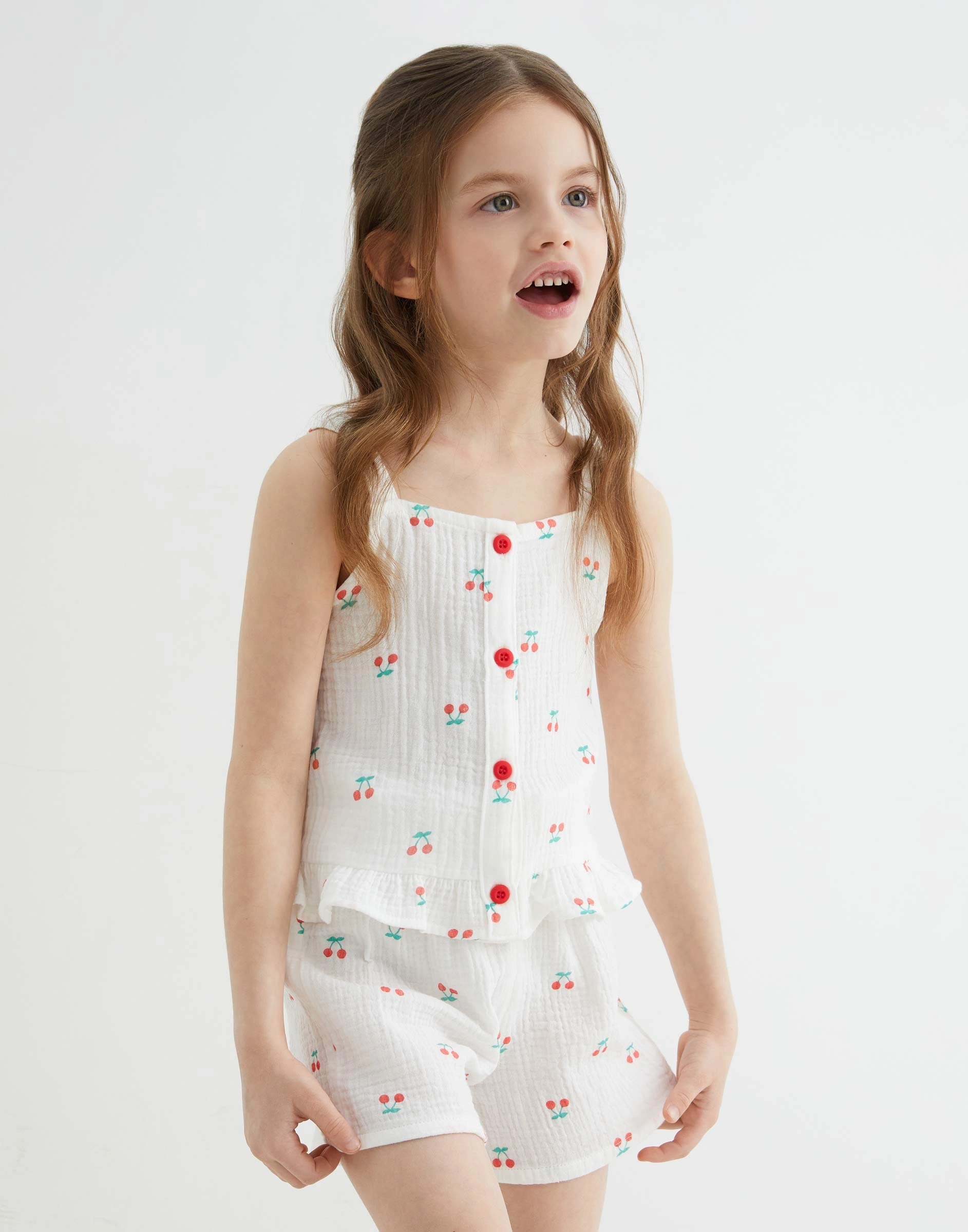Молочный топ из муслина с принтом и оборкой для девочки Gwt004724-1