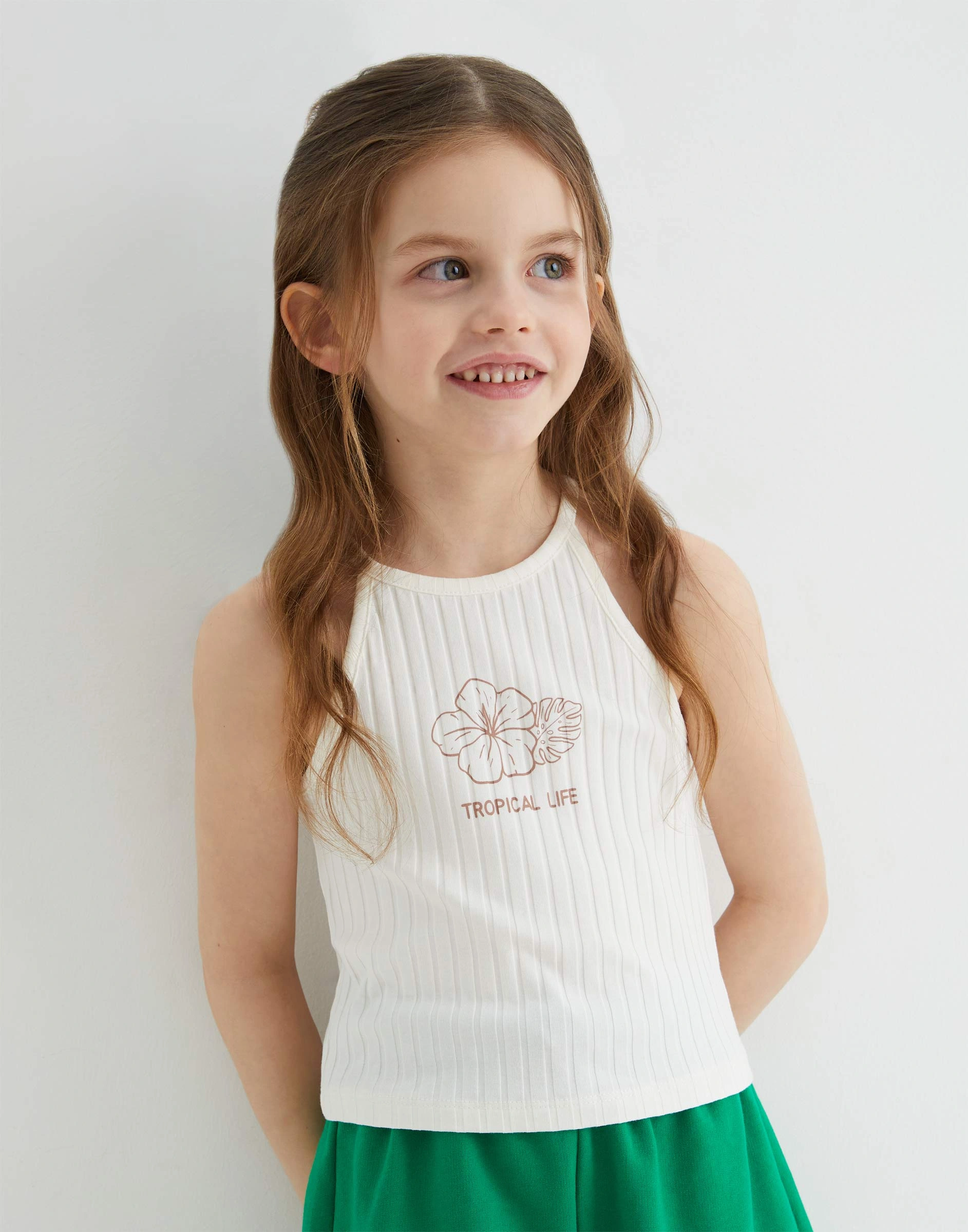 Молочный топ с принтом в рубчик для девочки Gtn004589-2