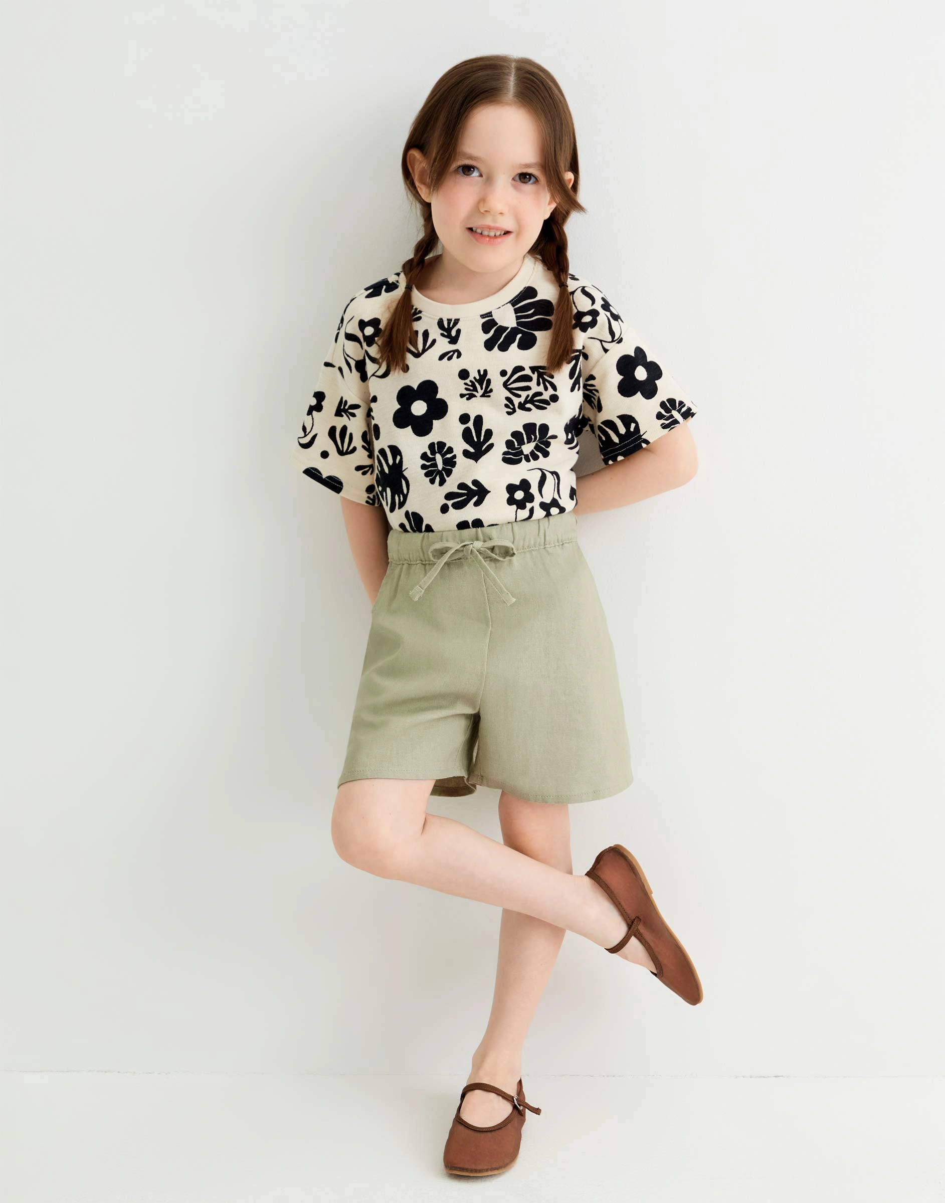 Оливковые шорты Comfort со льном для девочки Gsh012476-1