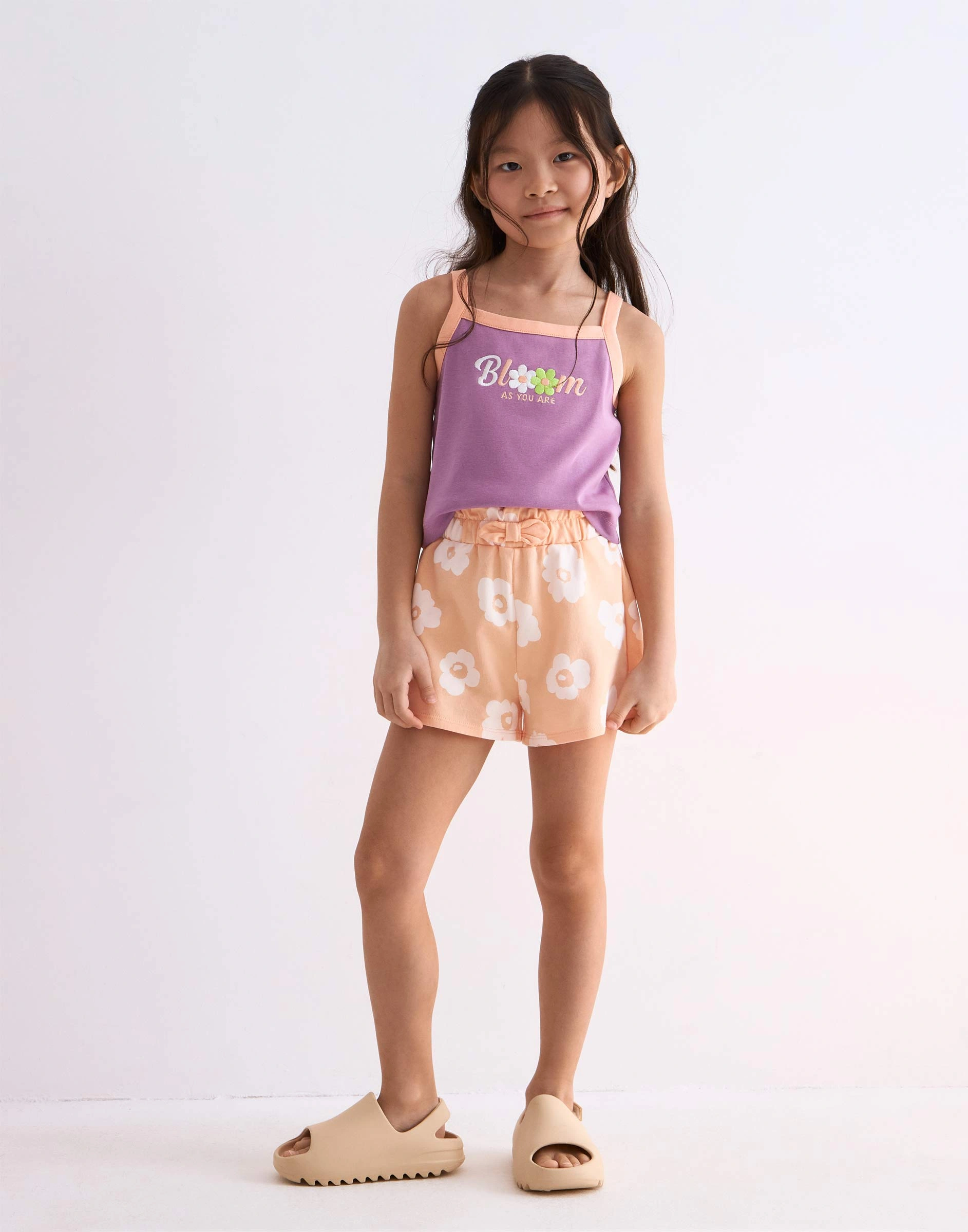 Персиковые шорты Paperbag с цветочным принтом для девочки Gsh012572-1