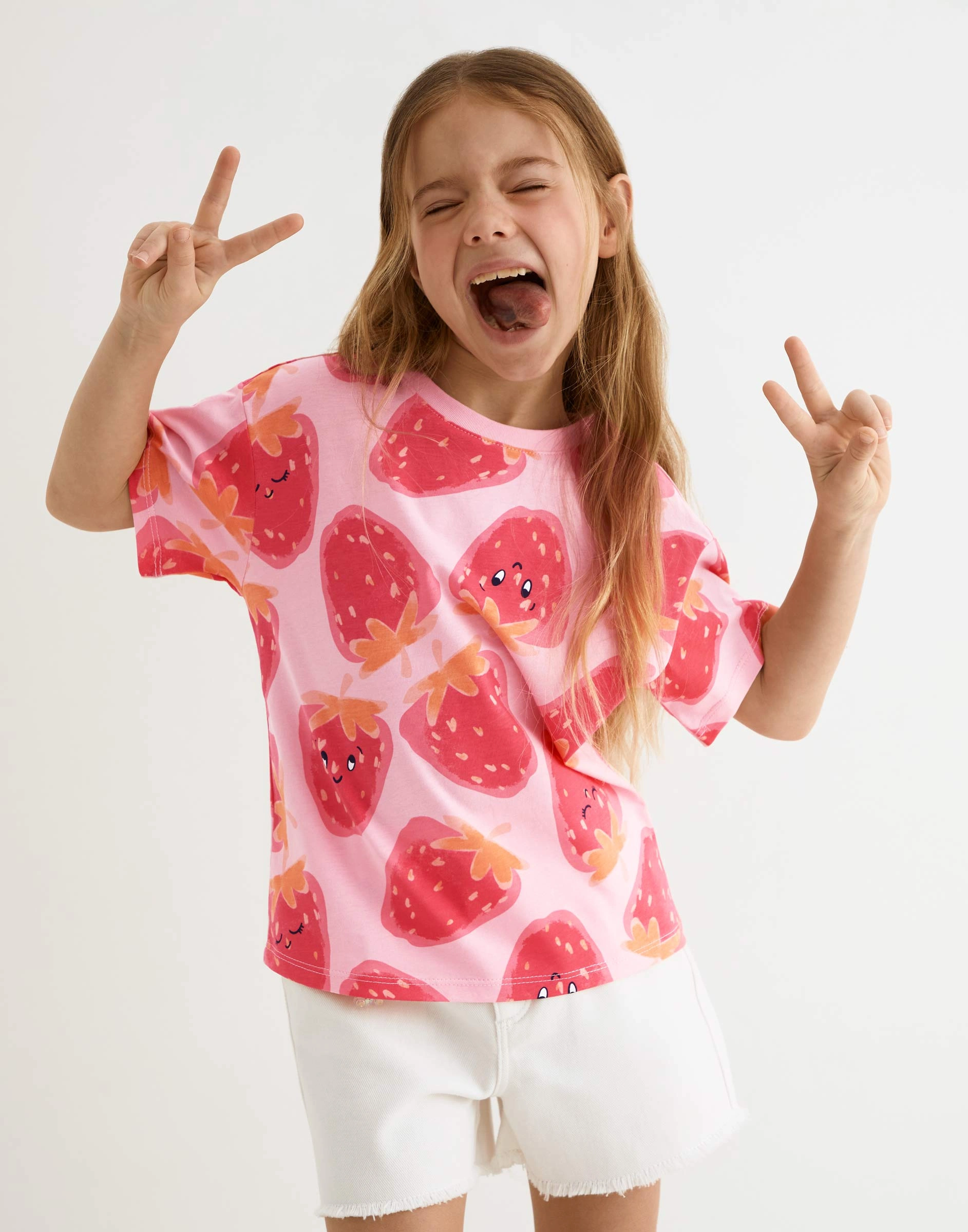 Розовая футболка oversize с принтом для девочки Gkt026858-2