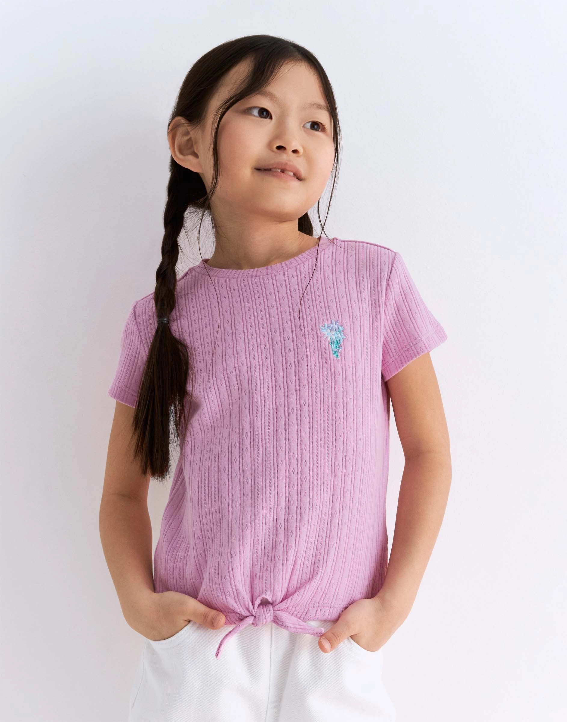 Розовая футболка с вышивкой и завязкой для девочки Gkt026179-1