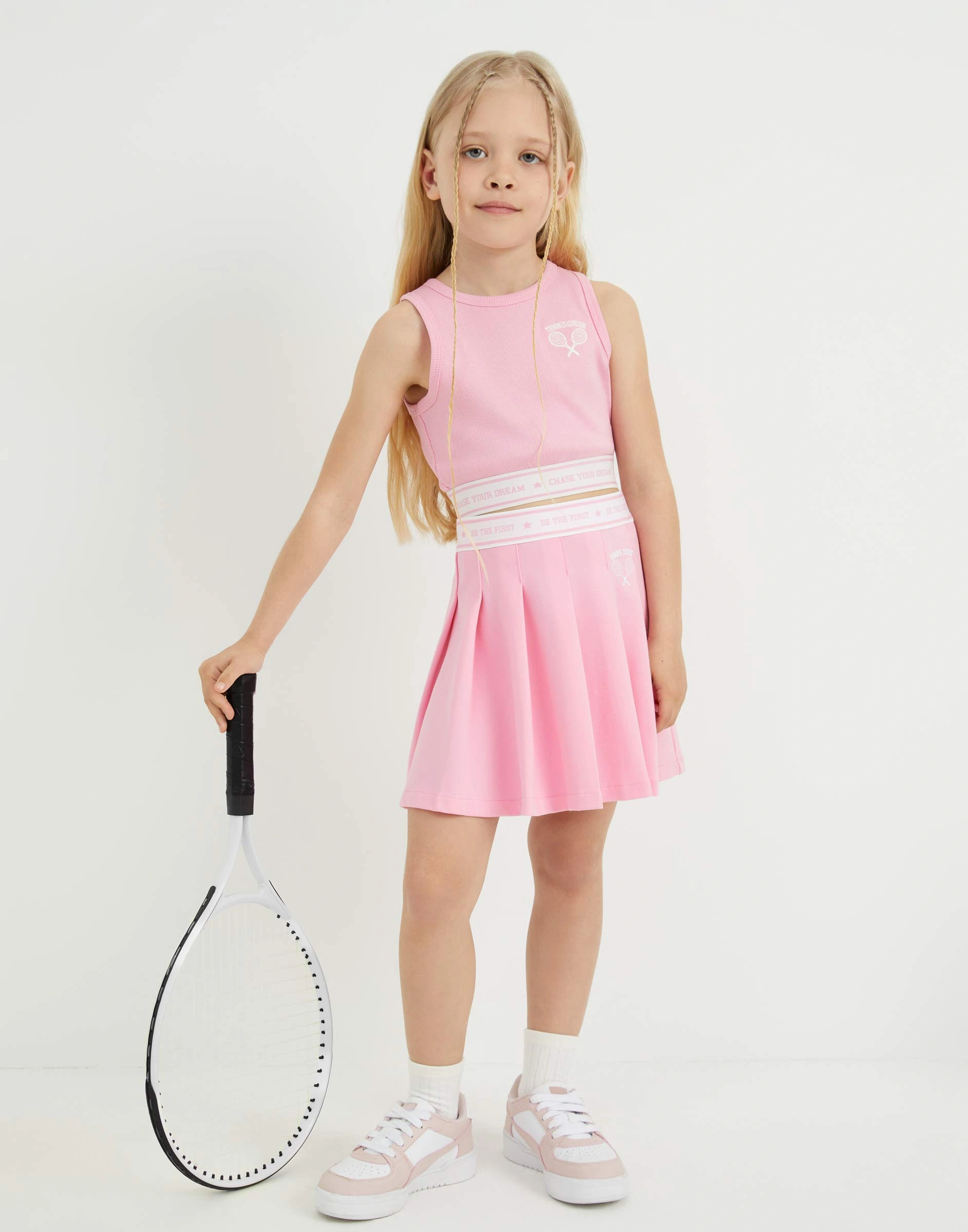 Розовая юбка со складками и вышивкой для девочки Gsk019510-3