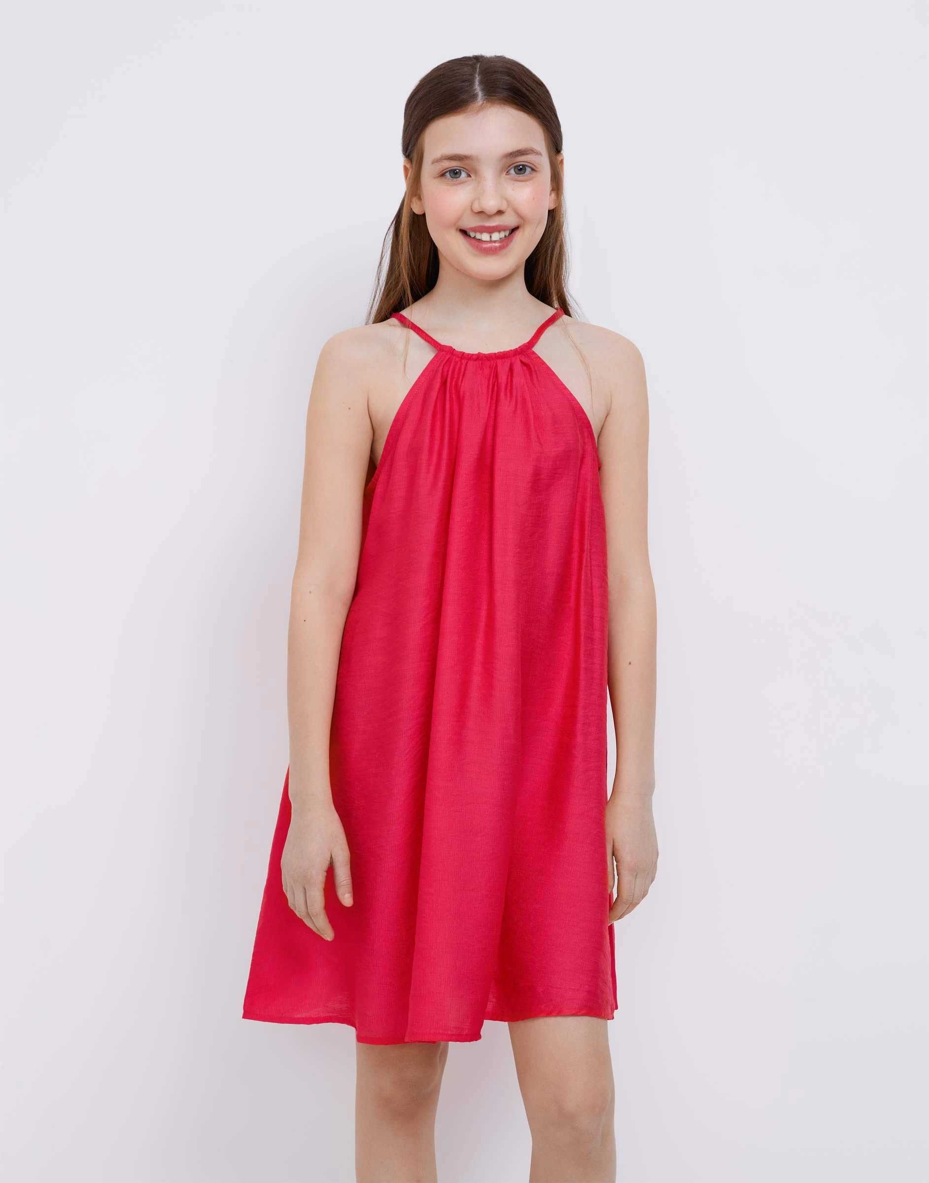 Розовое платье мини из муслина Gdr030136-2