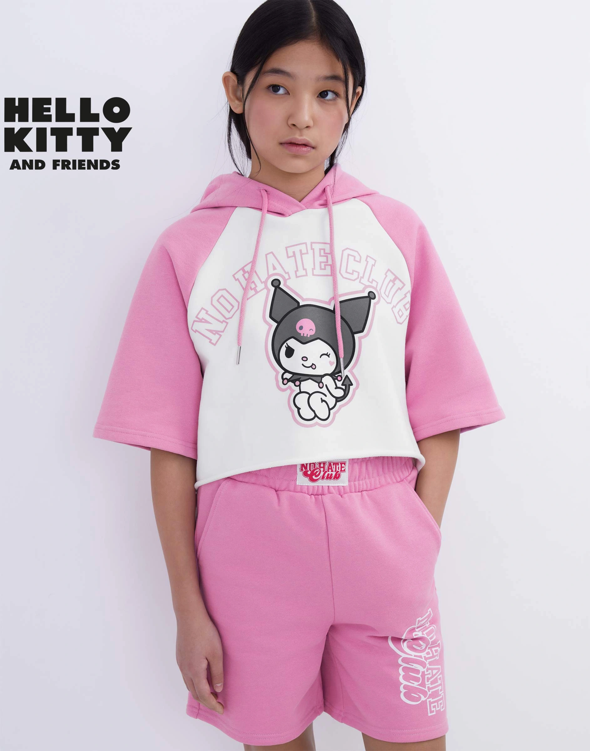 Розовое укороченное худи oversize с принтом Kuromi Gac024667-1