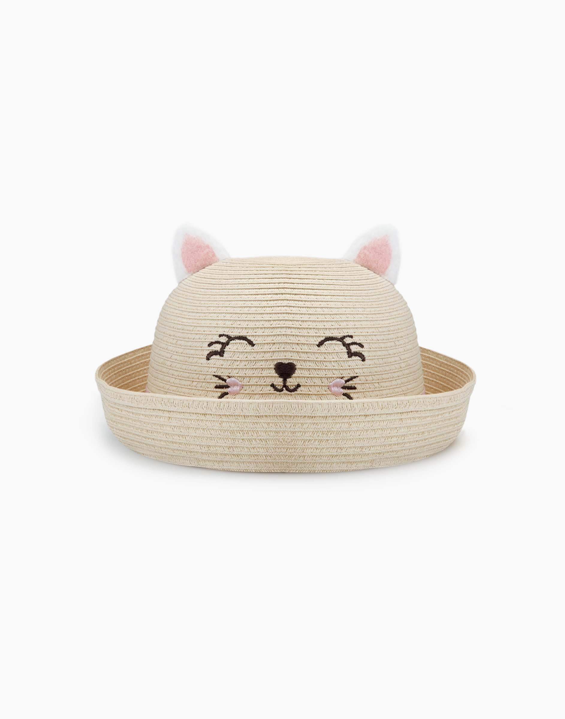 Светло-бежевая плетёная шляпа с ушками для девочки Gas015857-1