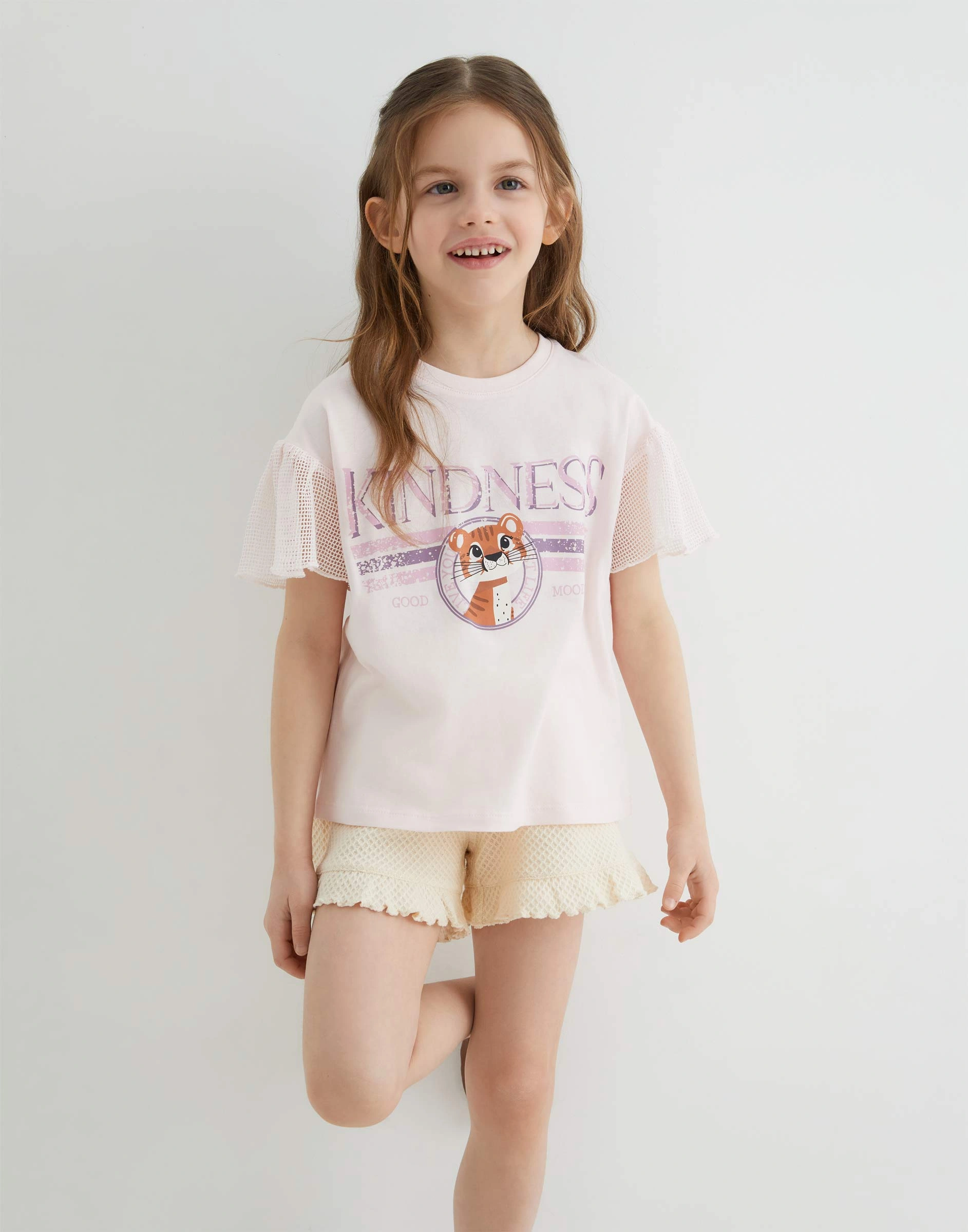 Светло-розовая футболка oversize с принтом для девочки Gkt026799-2