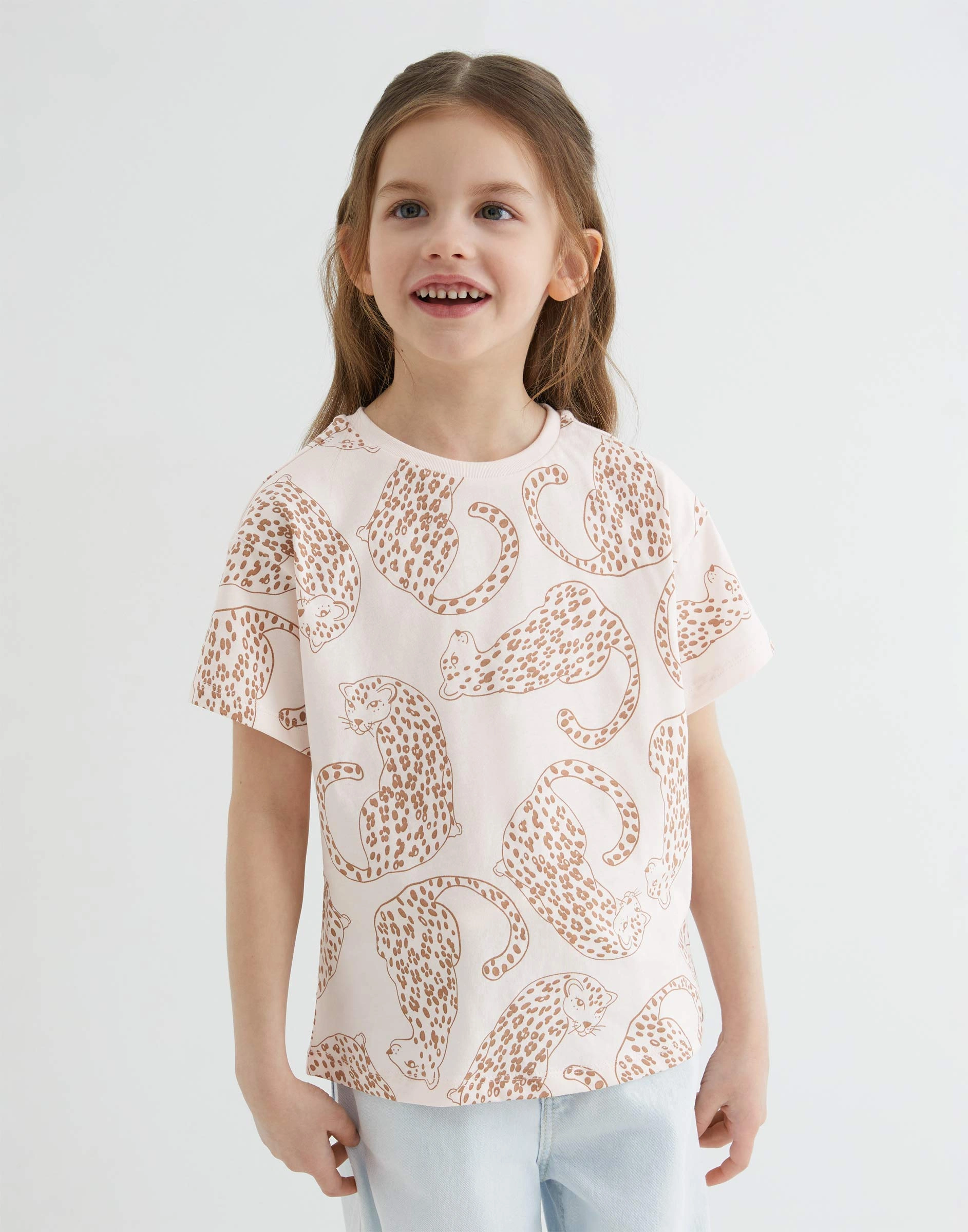 Светло-розовая футболка oversize с принтом для девочки Gkt026889-2