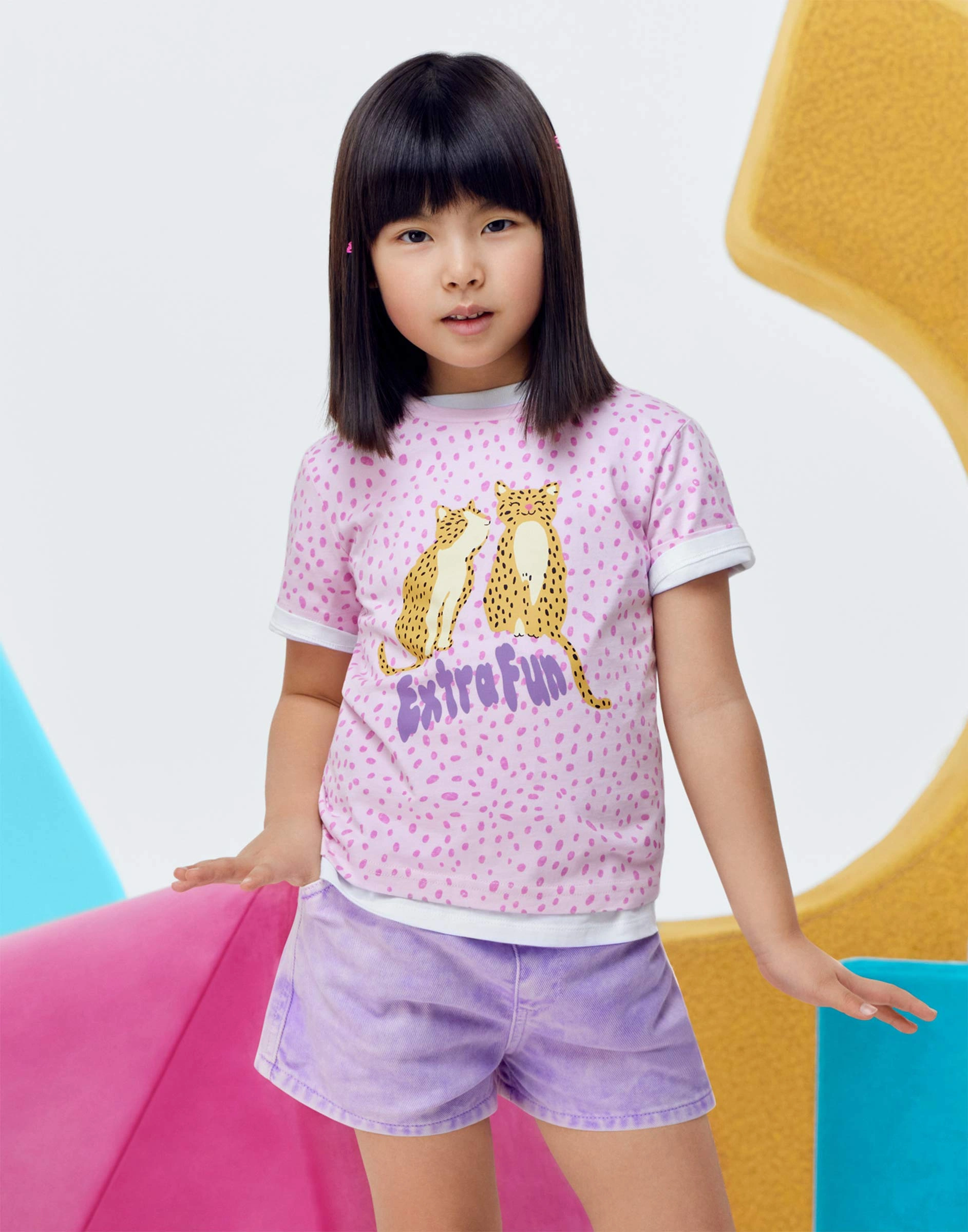 Светло-розовая футболка с тотальным принтом для девочки Gkt026944-2