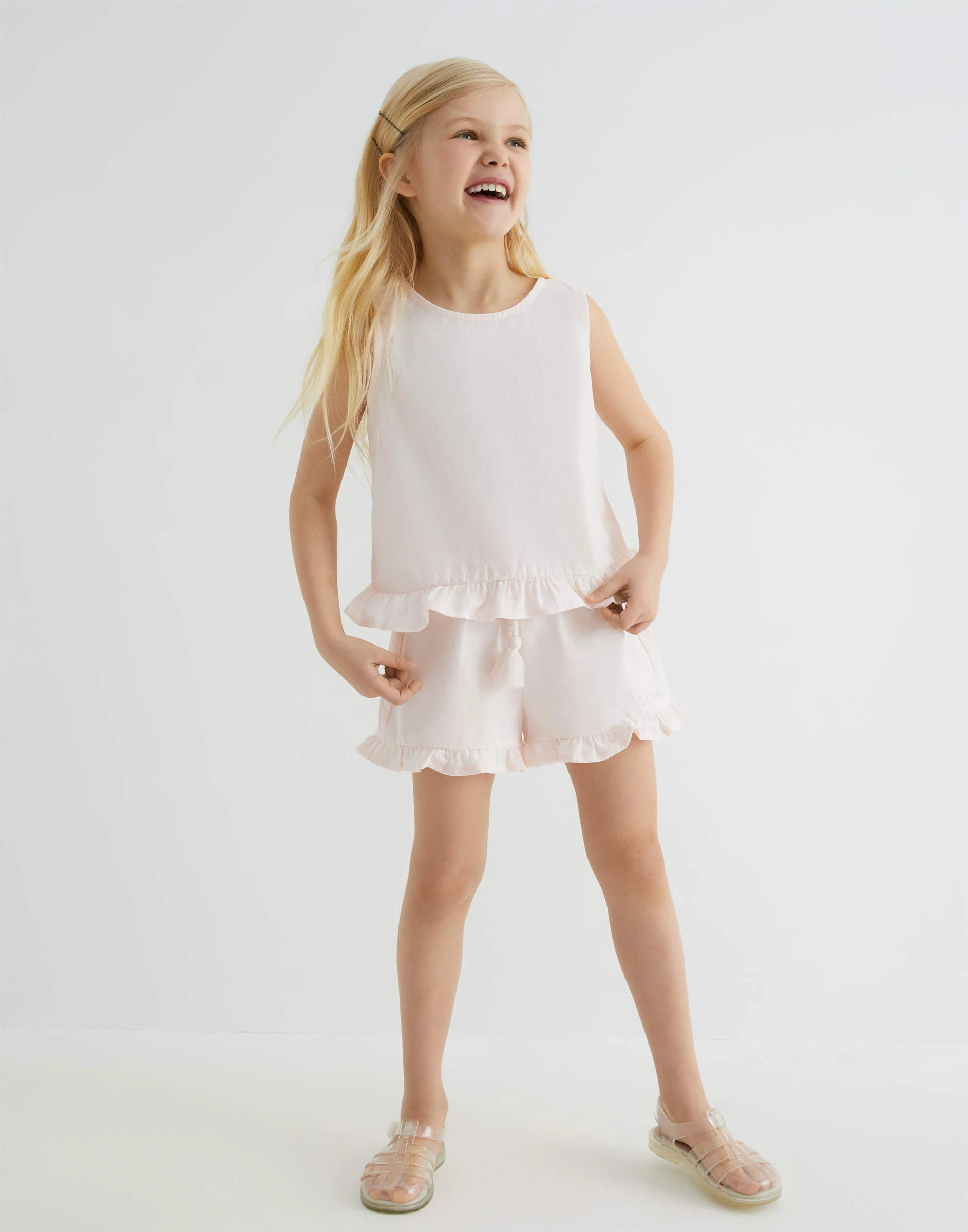 Светло-розовые шорты-трапеция с оборками для девочки Gsh012619-1