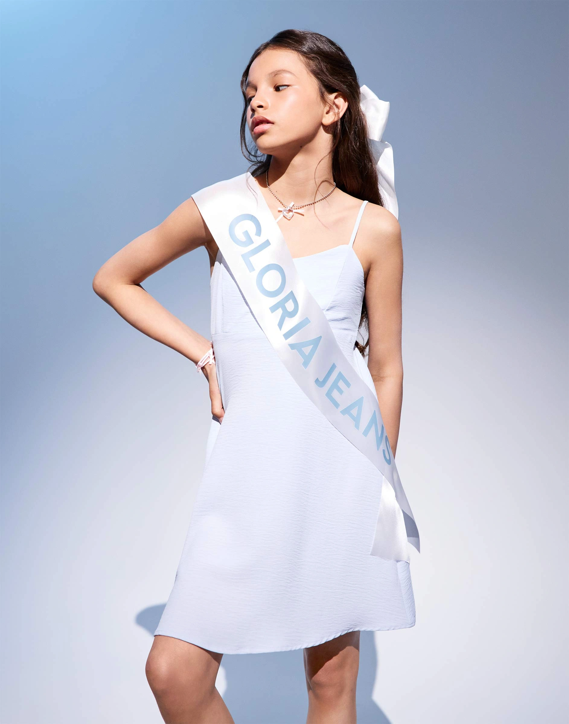 Светло-синее мини-платье с вырезом Gdr029967-1