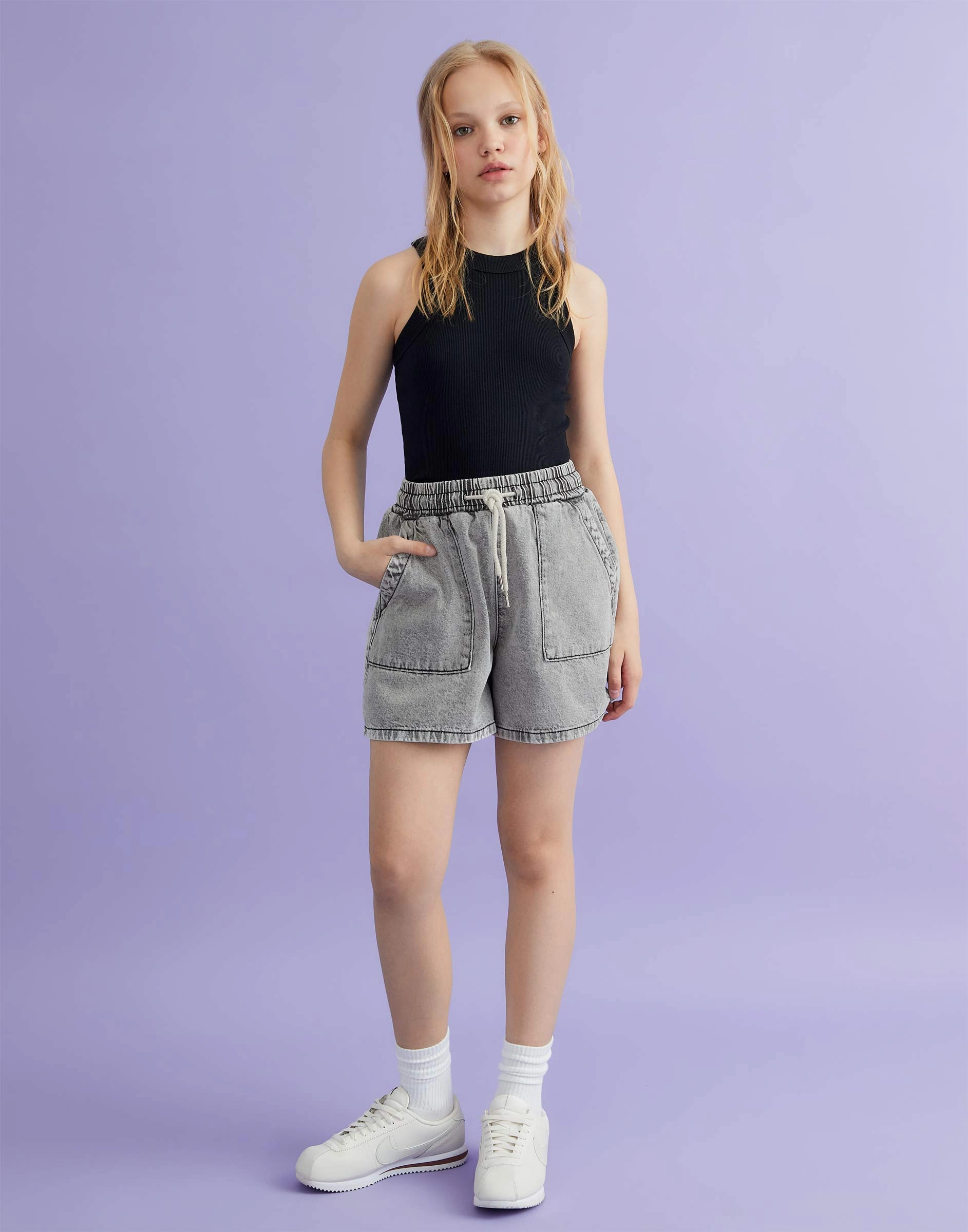 Серые джинсовые шорты Easy fit на резинке Gsh013077-1