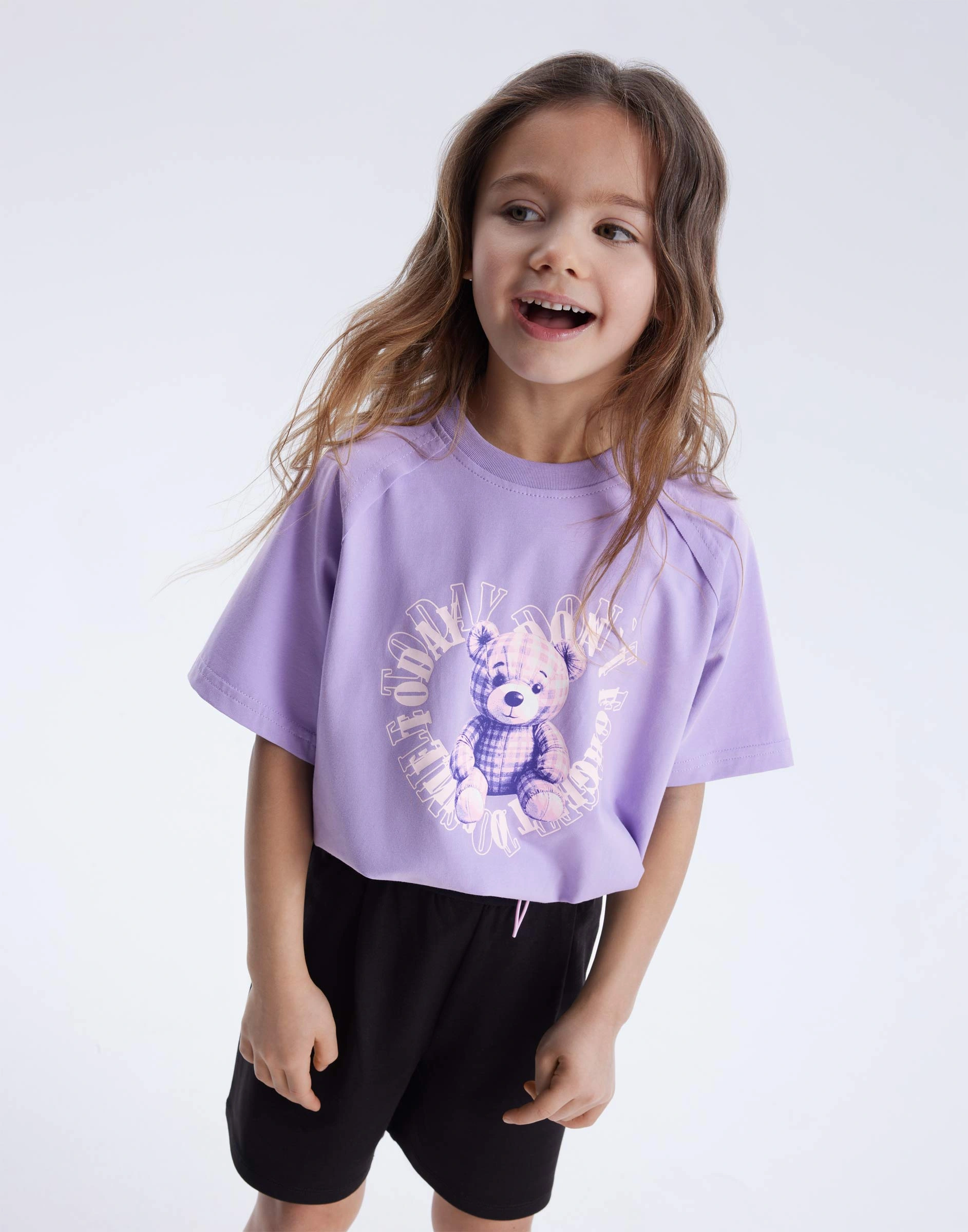 Сиреневая футболка oversize с принтом для девочки Gkt026391-1
