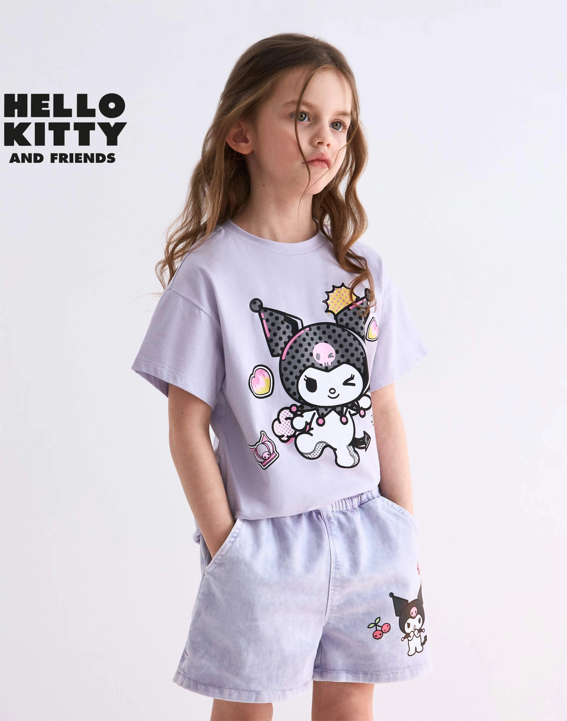 Сиреневые шорты Easy fit с принтом Kuromi для девочки Gsh013056-1
