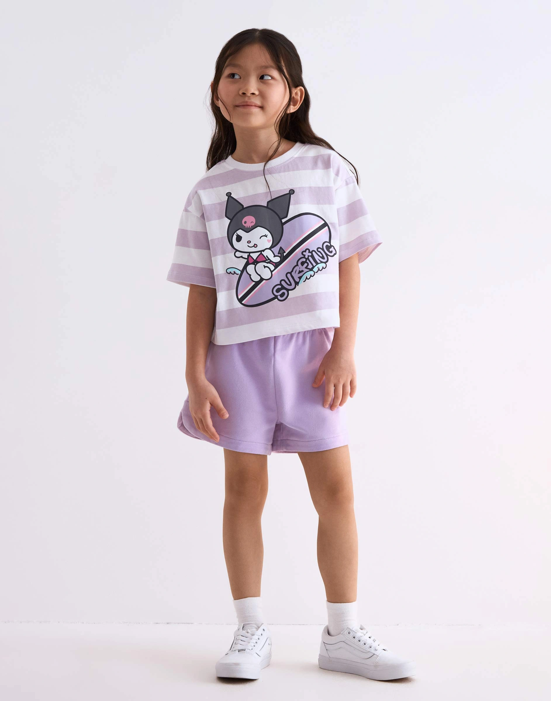 Сиреневые шорты с лейблом и фигурным низом для девочки Gsh012636-1