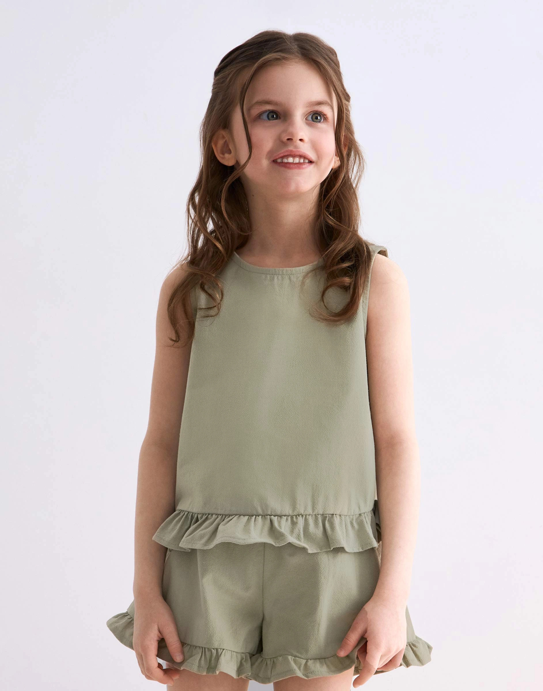 Хаки блузка из крепа с оборкой для девочки Gwt004876-2