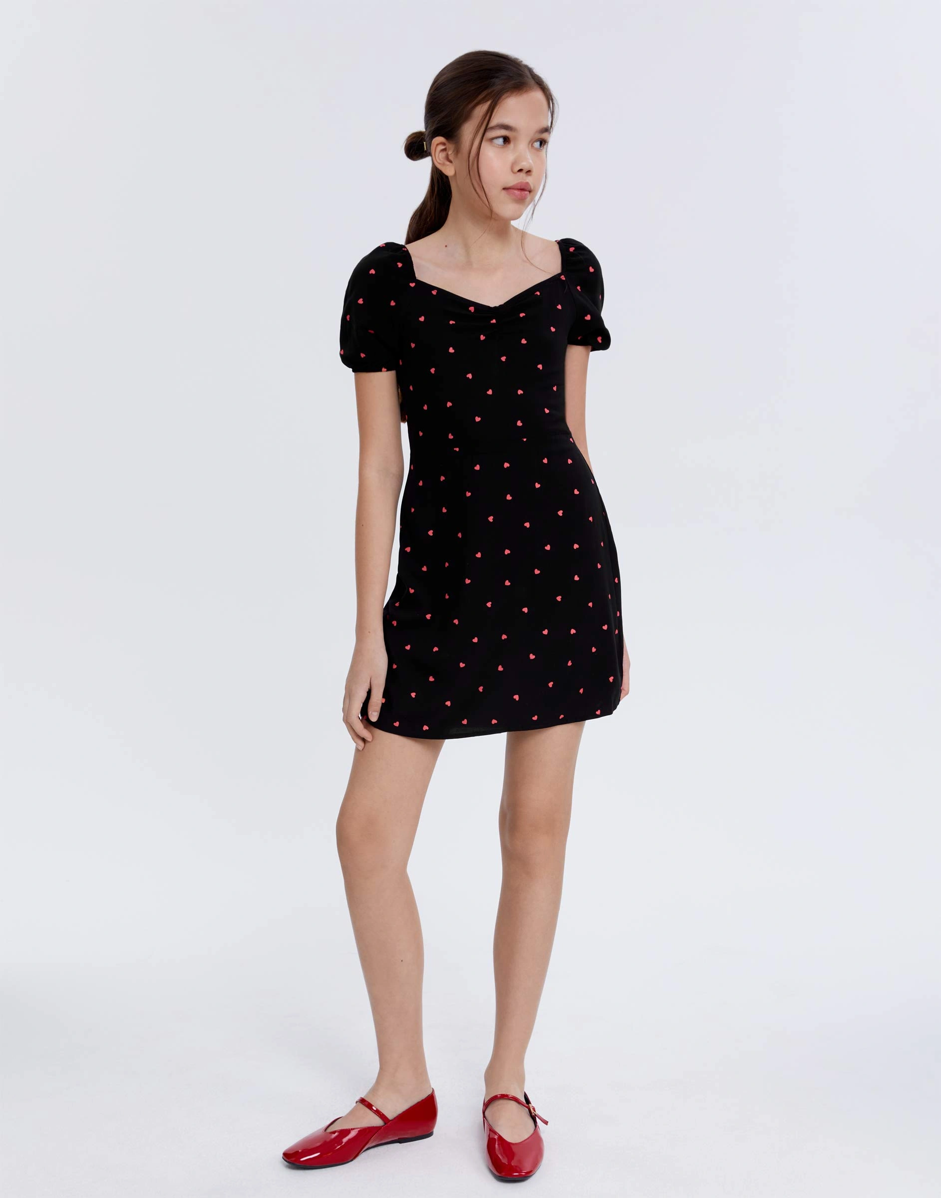 Чёрное платье с принтом и рукавами-фонариками Gdr029899-2