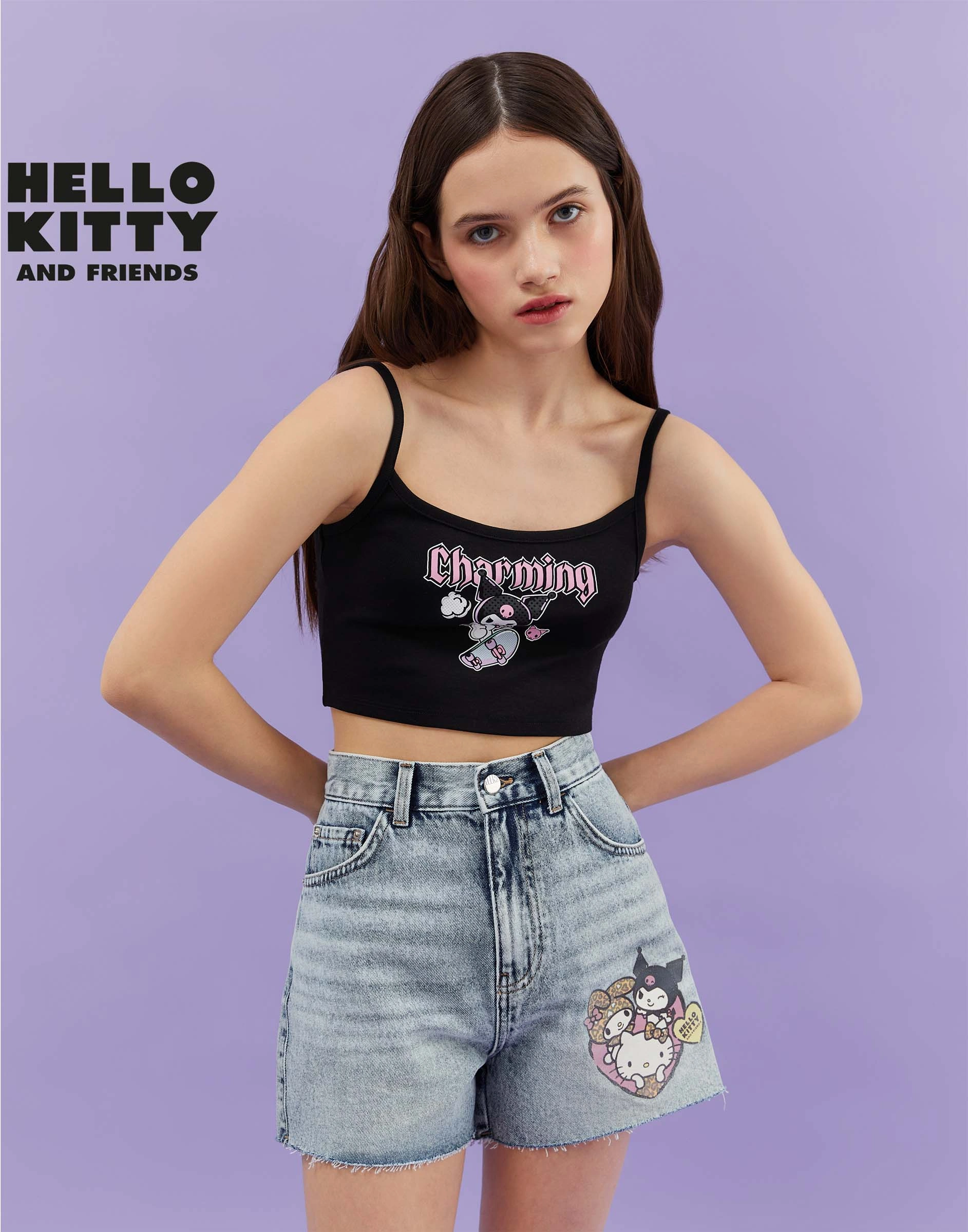 Чёрный кроп-топ с принтом Kuromi Gtn003957-2