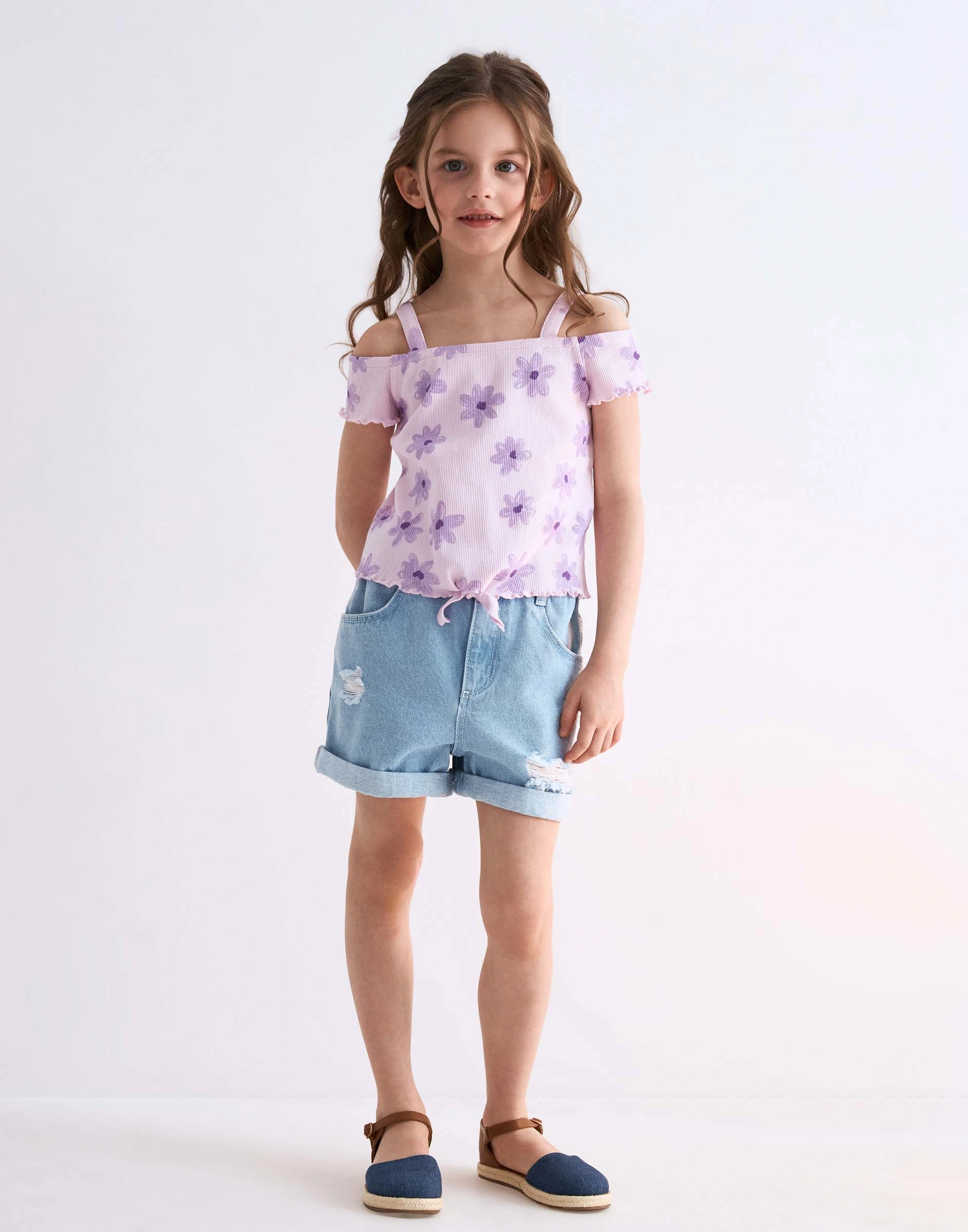 Шорты с рваным дизайном и подворотами для девочки Gsh012600-1