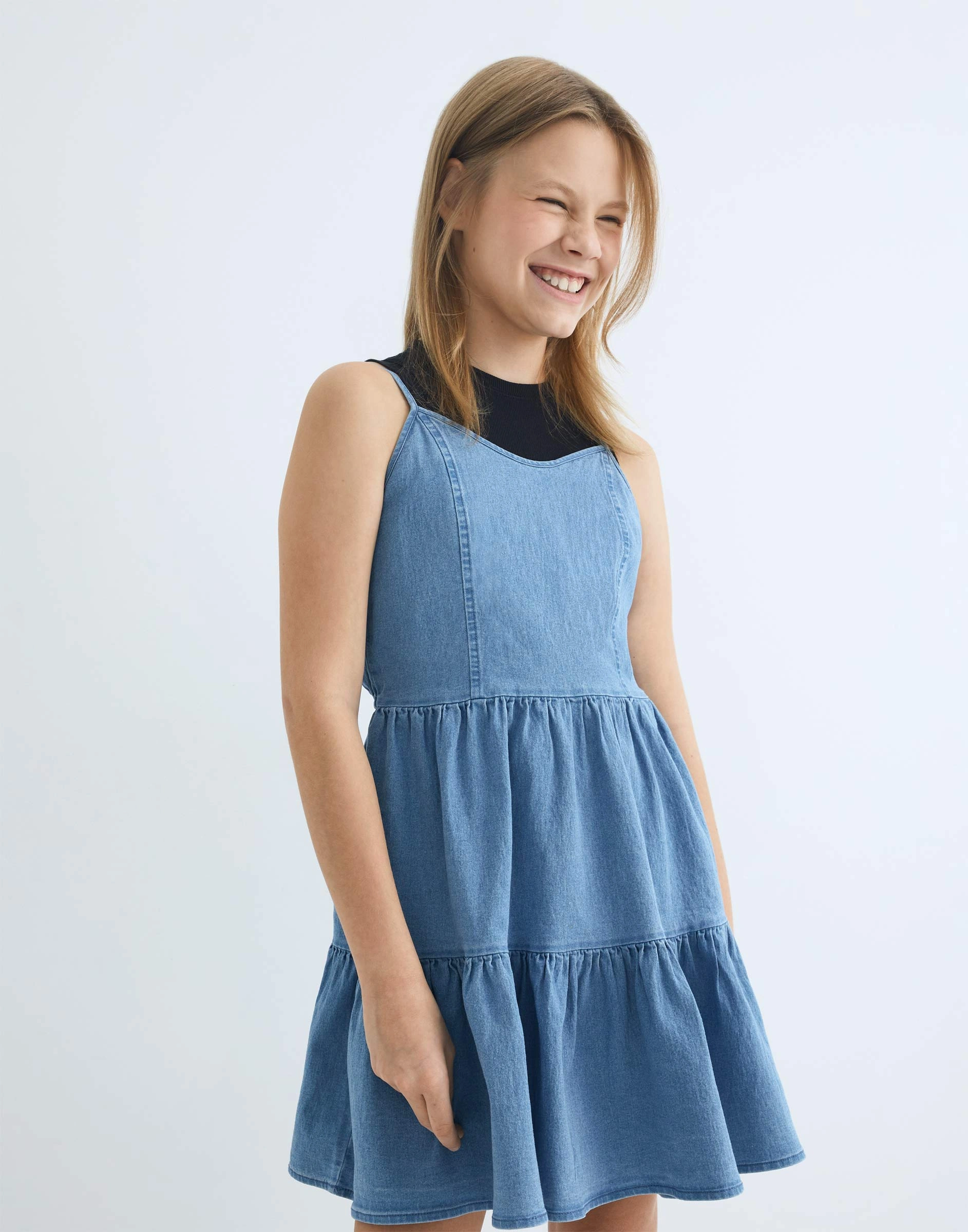 Джинсовое ярусное платье на бретелях Gdr029964-1