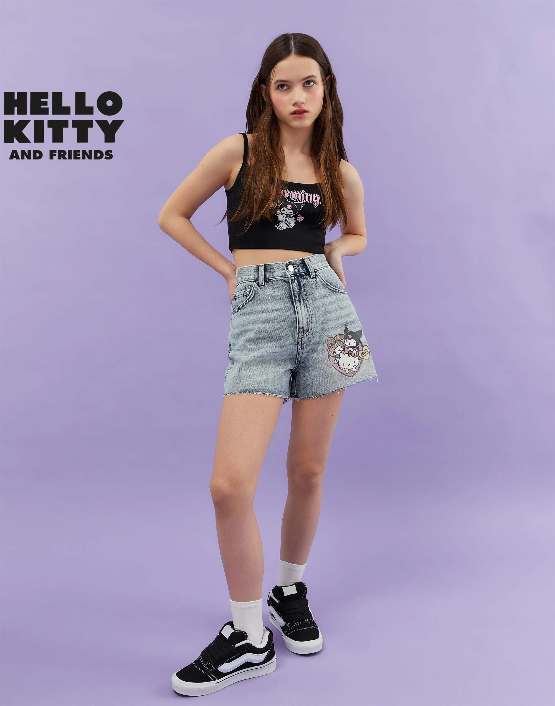 Джинсовые шорты Mom с принтом Hello Kitty Gsh012818-2