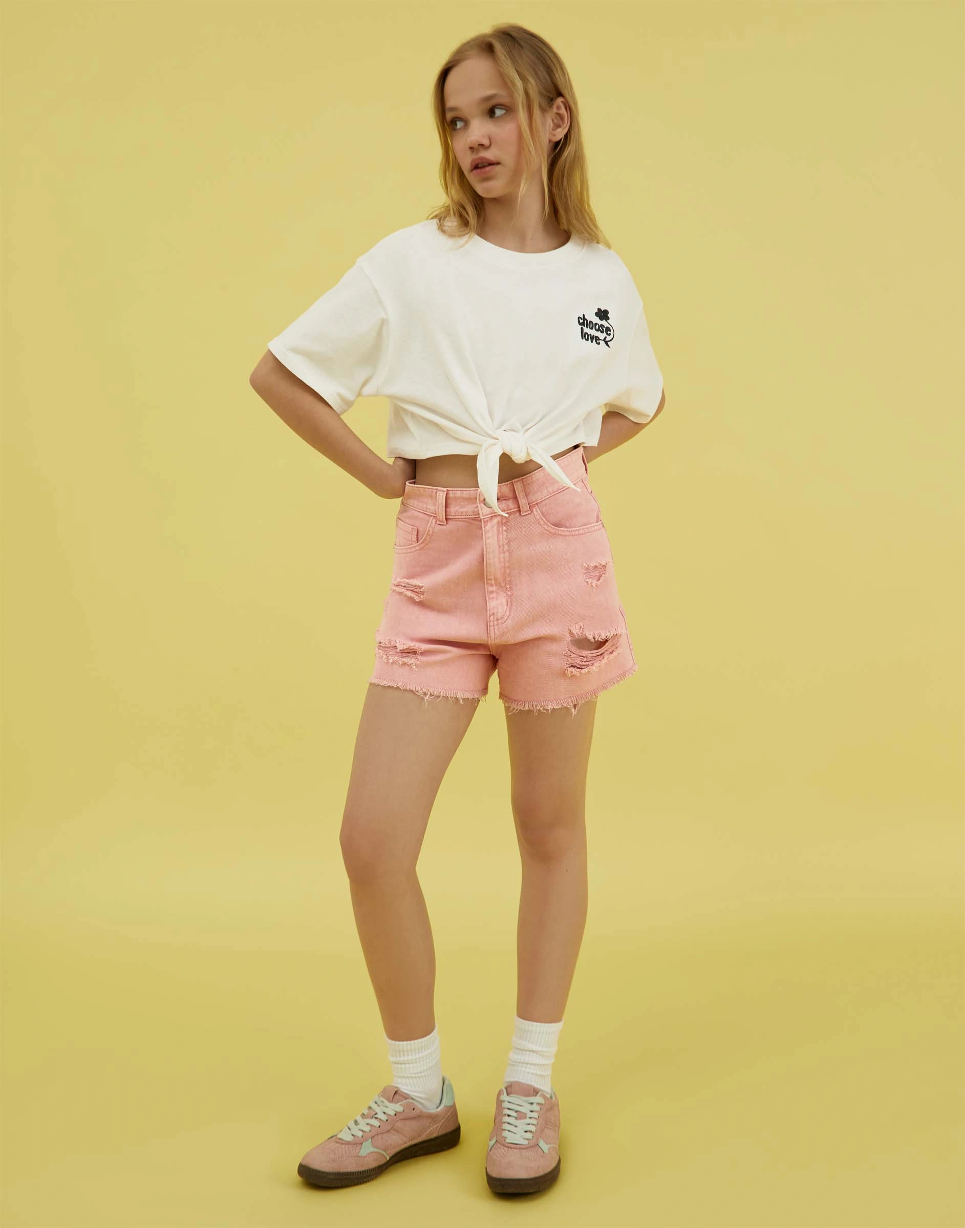 Персиковые шорты Mom с рваным дизайном Gsh012822-3