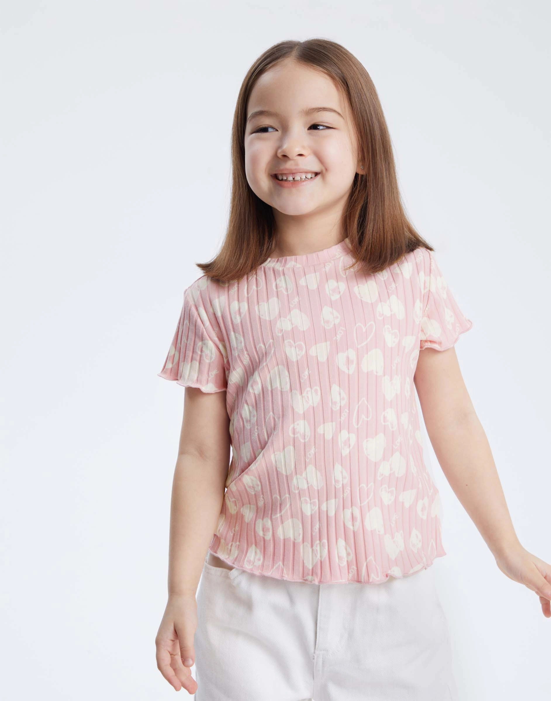 Розовая футболка с принтом и волнистым краем для девочки Gkt026191-3