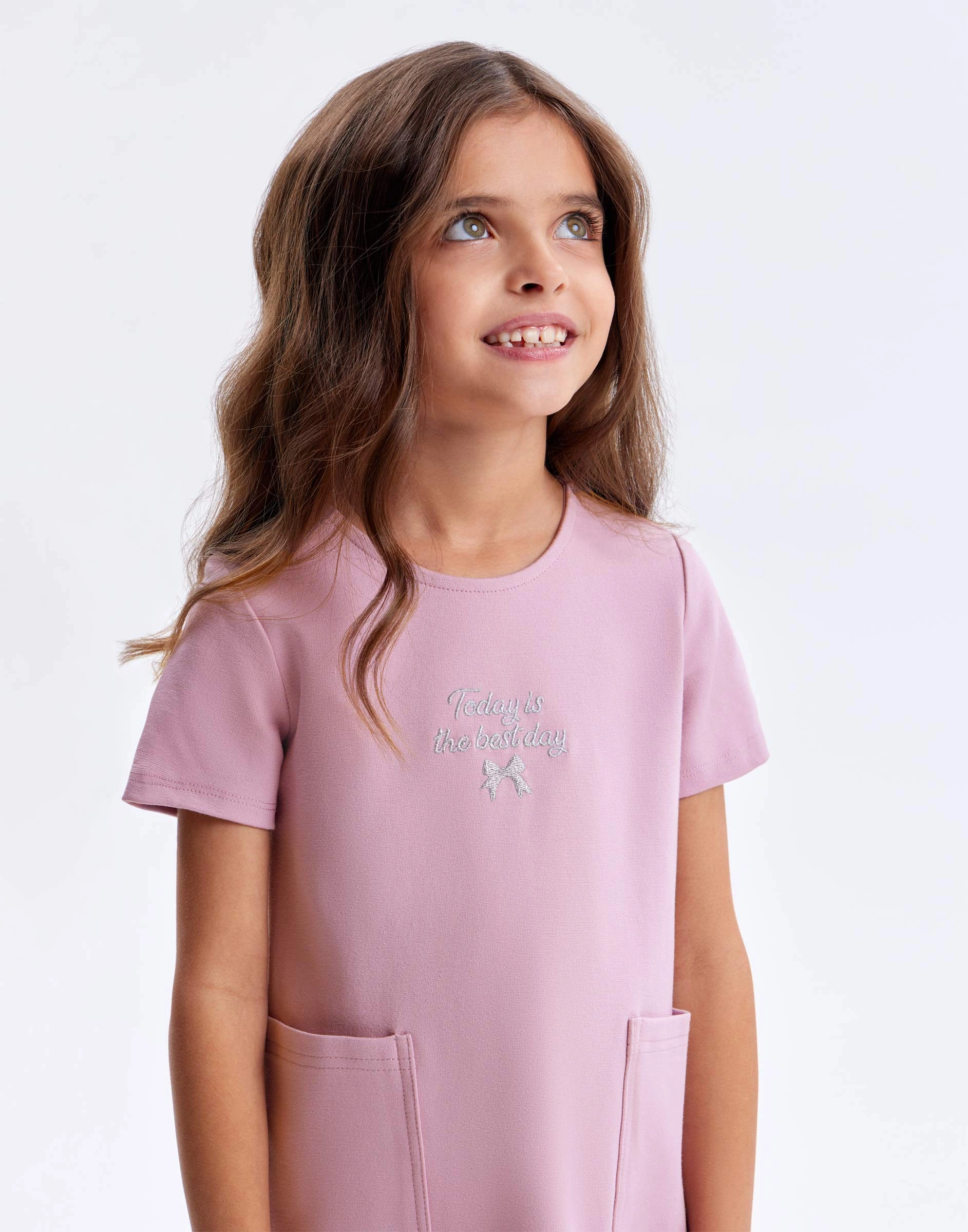 Розовое платье с вышивкой и карманами для девочки Gdr029833-2