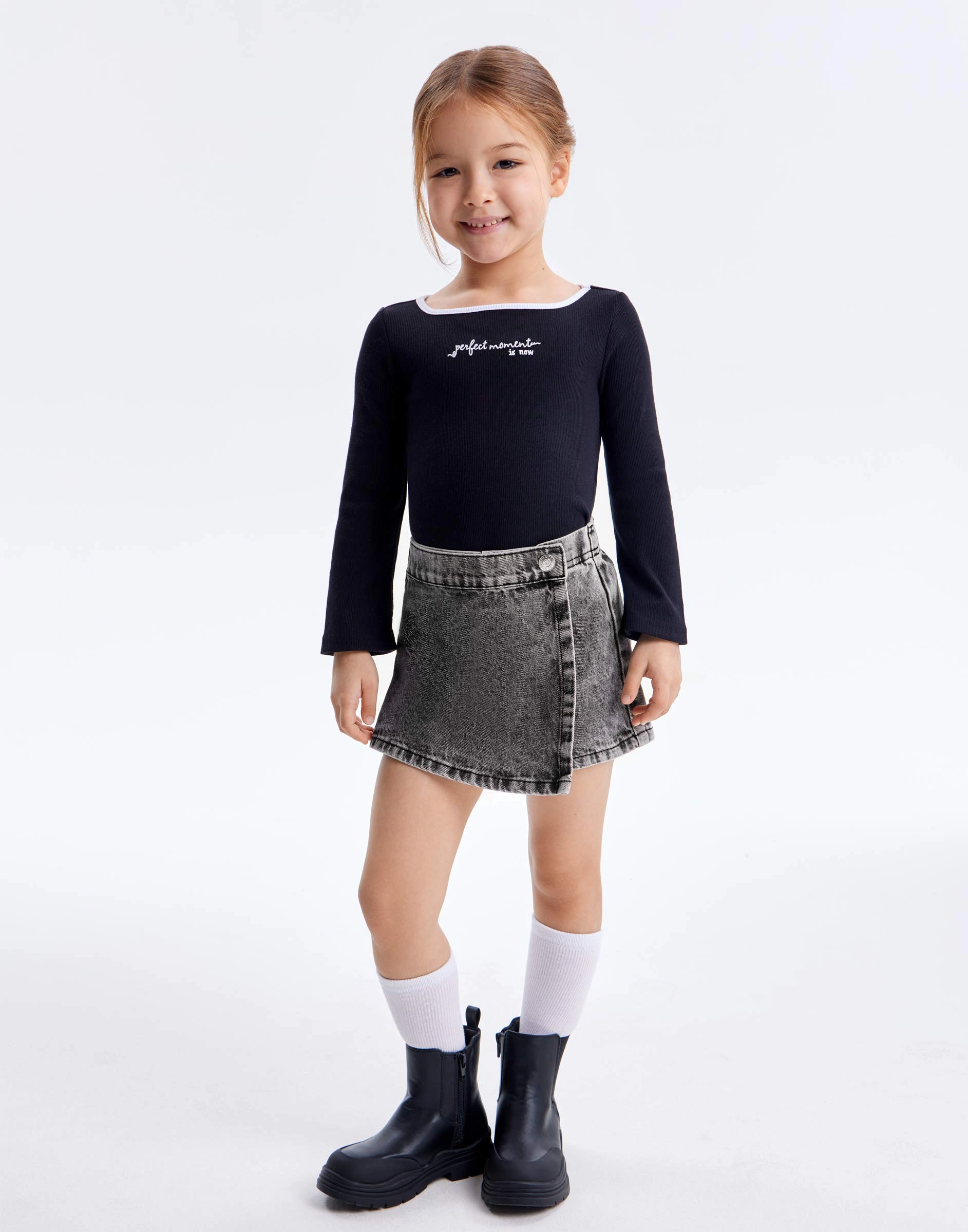 Серая джинсовая юбка-шорты с эффектом варки для девочки Gsk019473-1