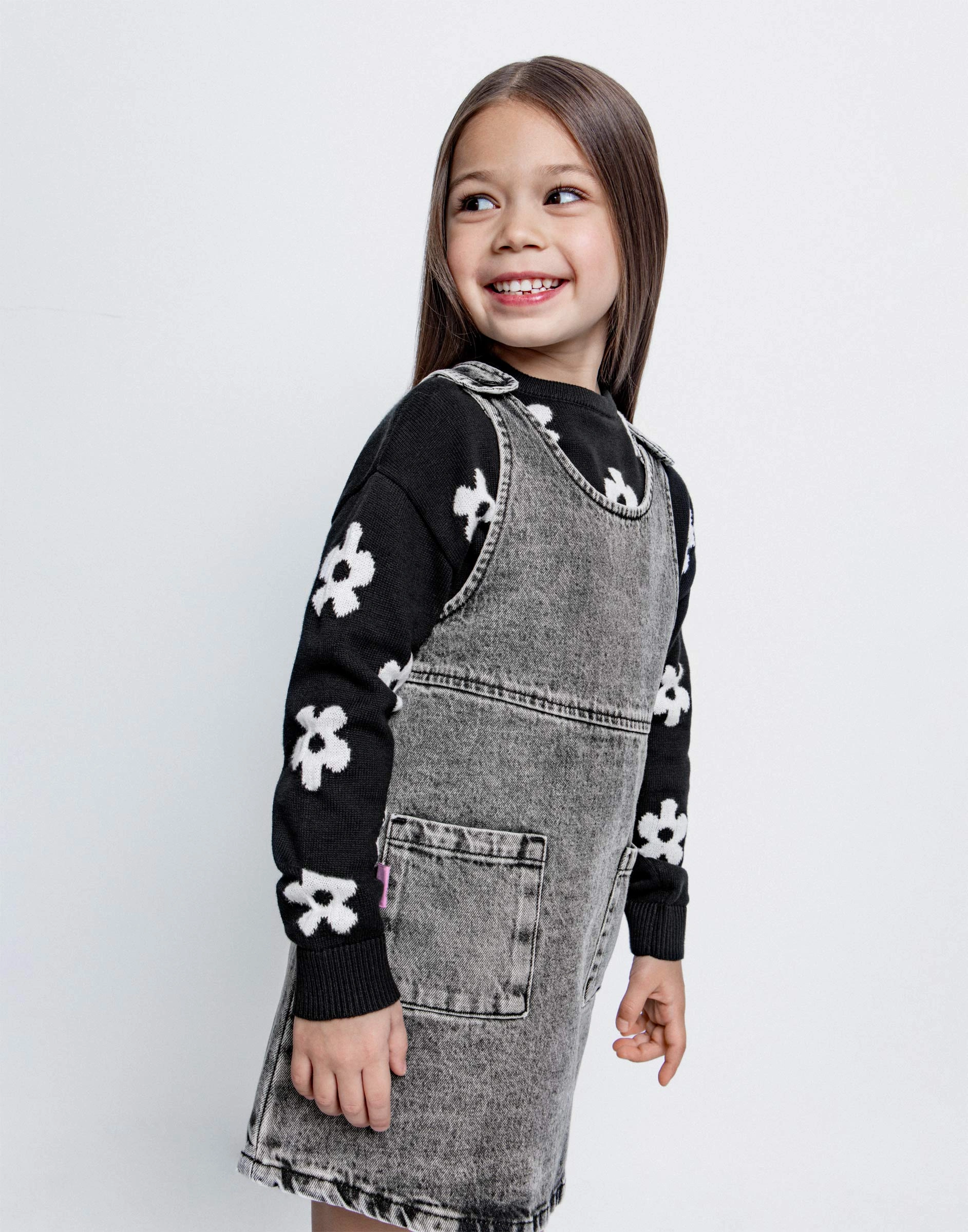 Серый джинсовый сарафан с карманами для девочки Gdr029691-1