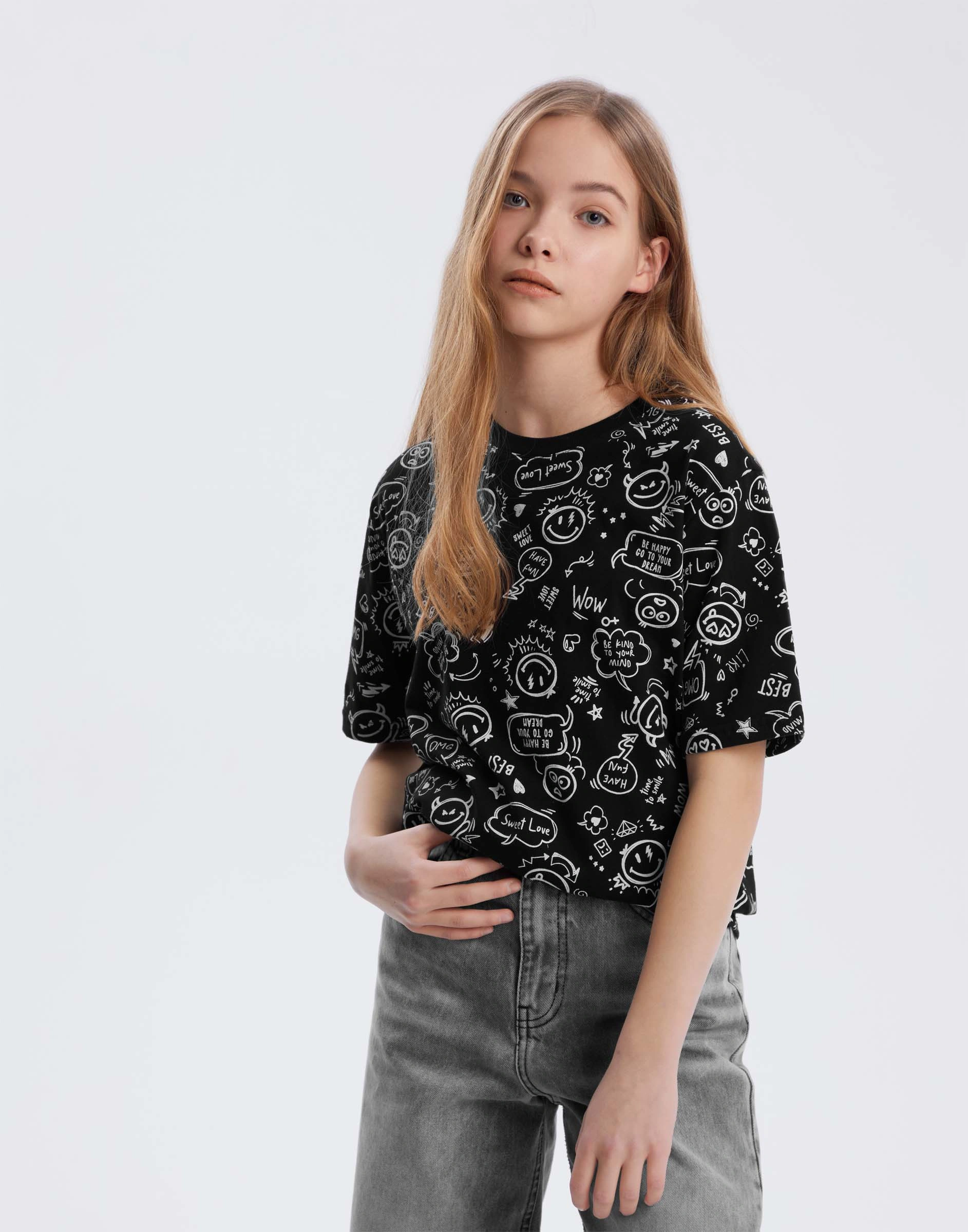 Чёрная футболка oversize с принтом Gkt026395-1