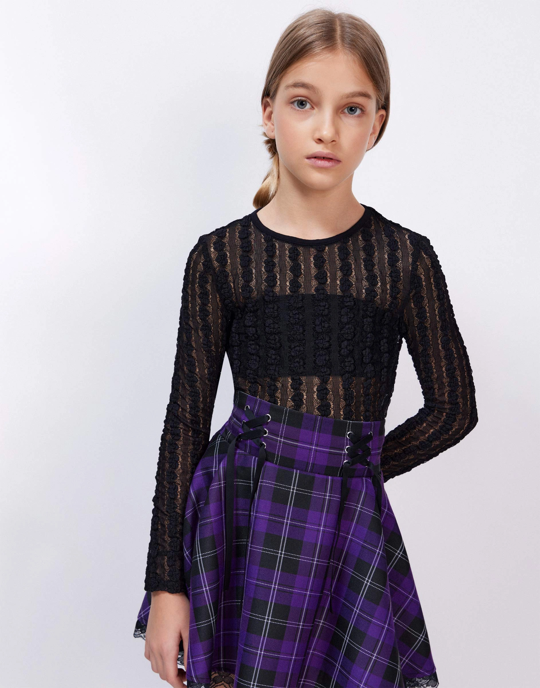 Чёрный кружевной лонгслив Gkt025214-1