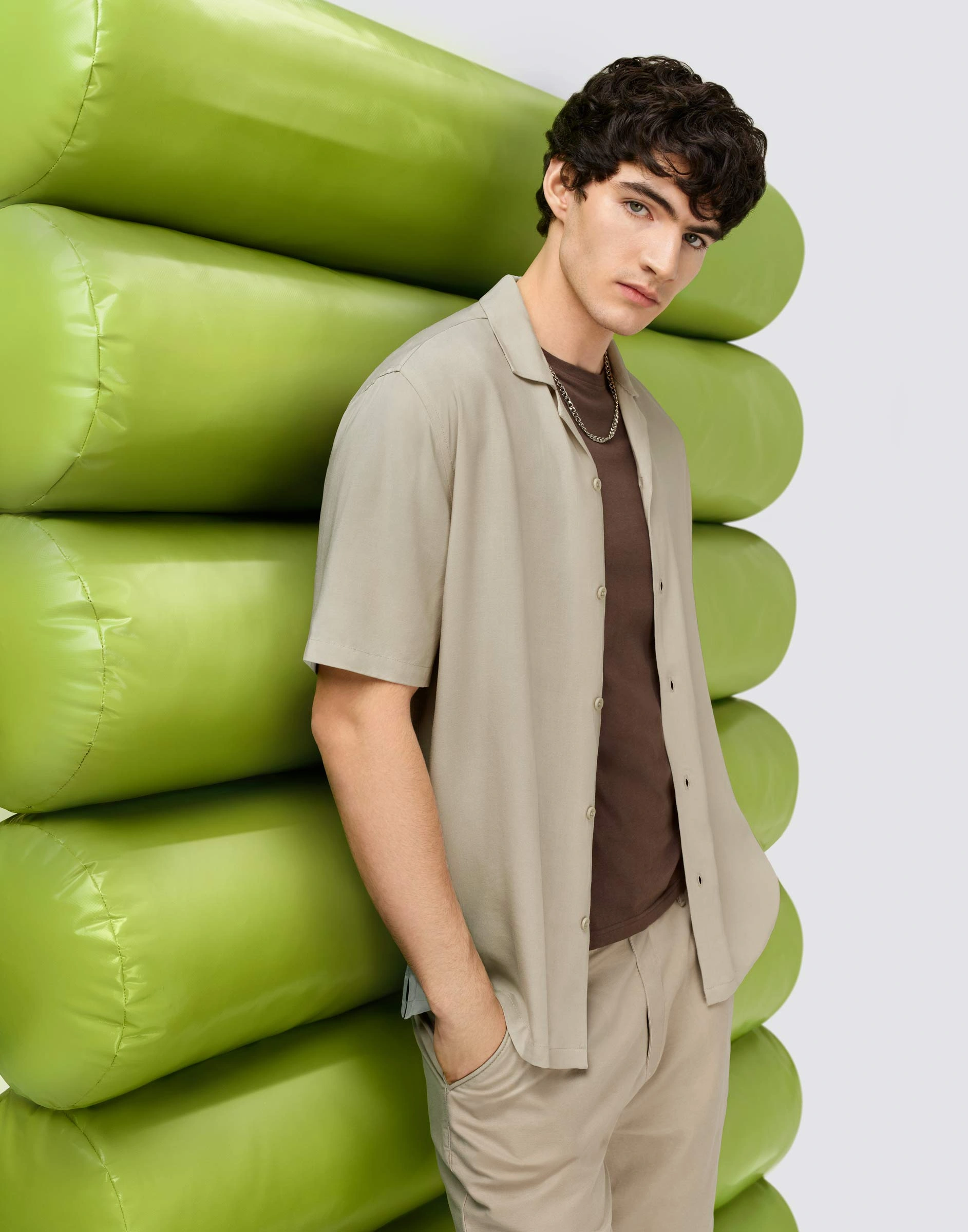 Бежевая рубашка oversize с коротким рукавом Bwt001852-2