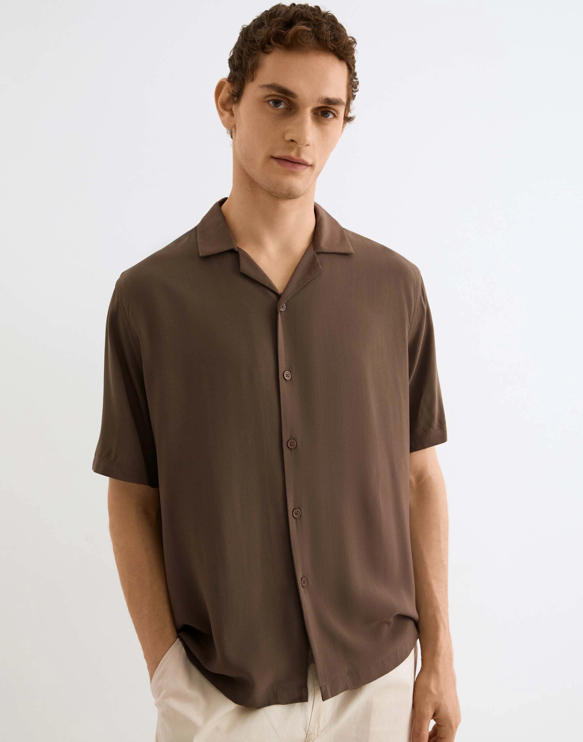 Коричневая рубашка oversize с коротким рукавом Bwt001852-1