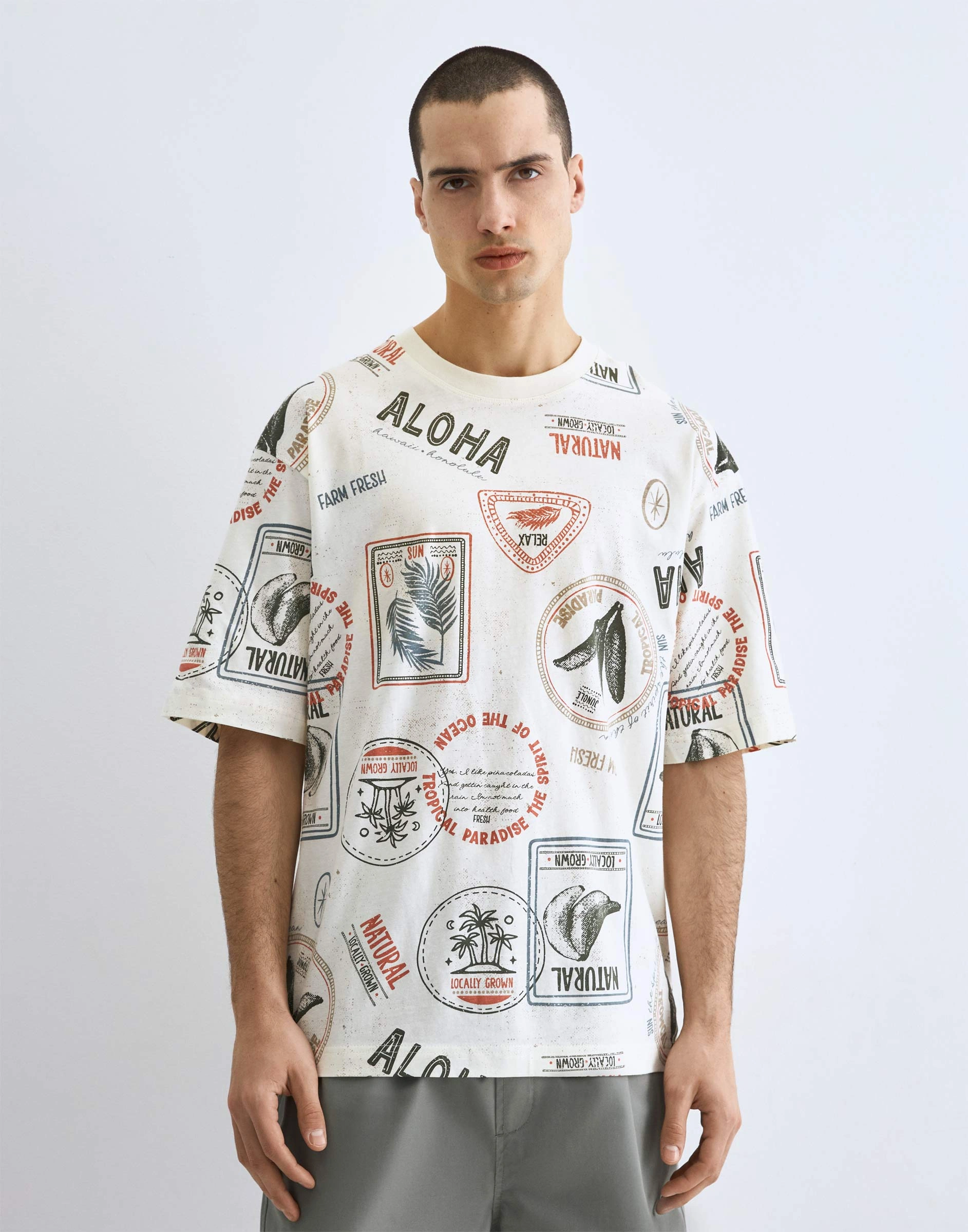 Молочная свободная футболка с тропическим принтом Bkt016803-2
