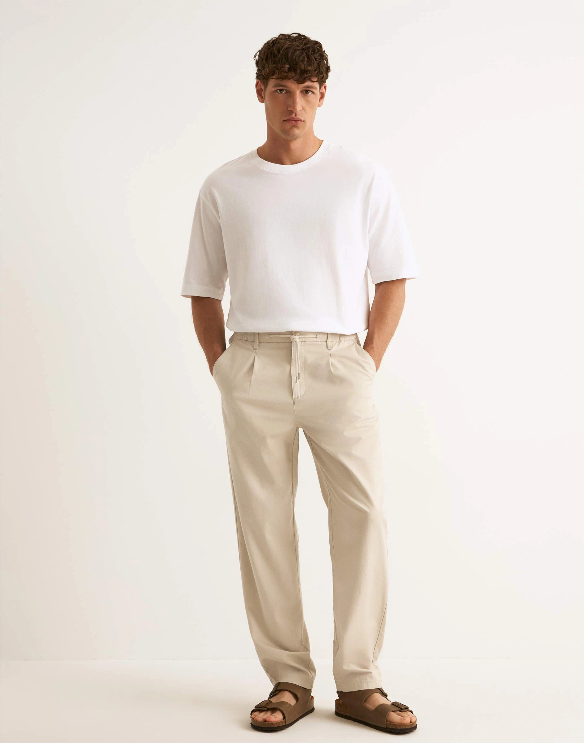 Светло-бежевые брюки Easy fit со льном Bpt004024-1