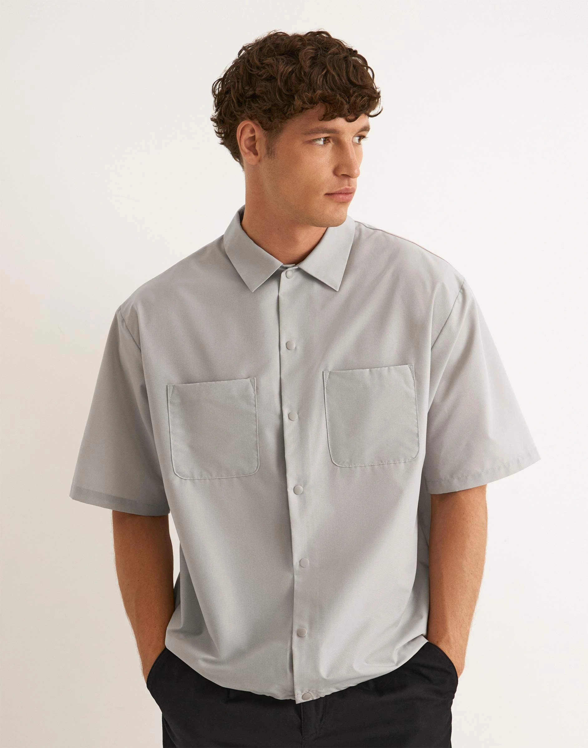 Светло-серая рубашка oversize с коротким рукавом Bwt001937-1