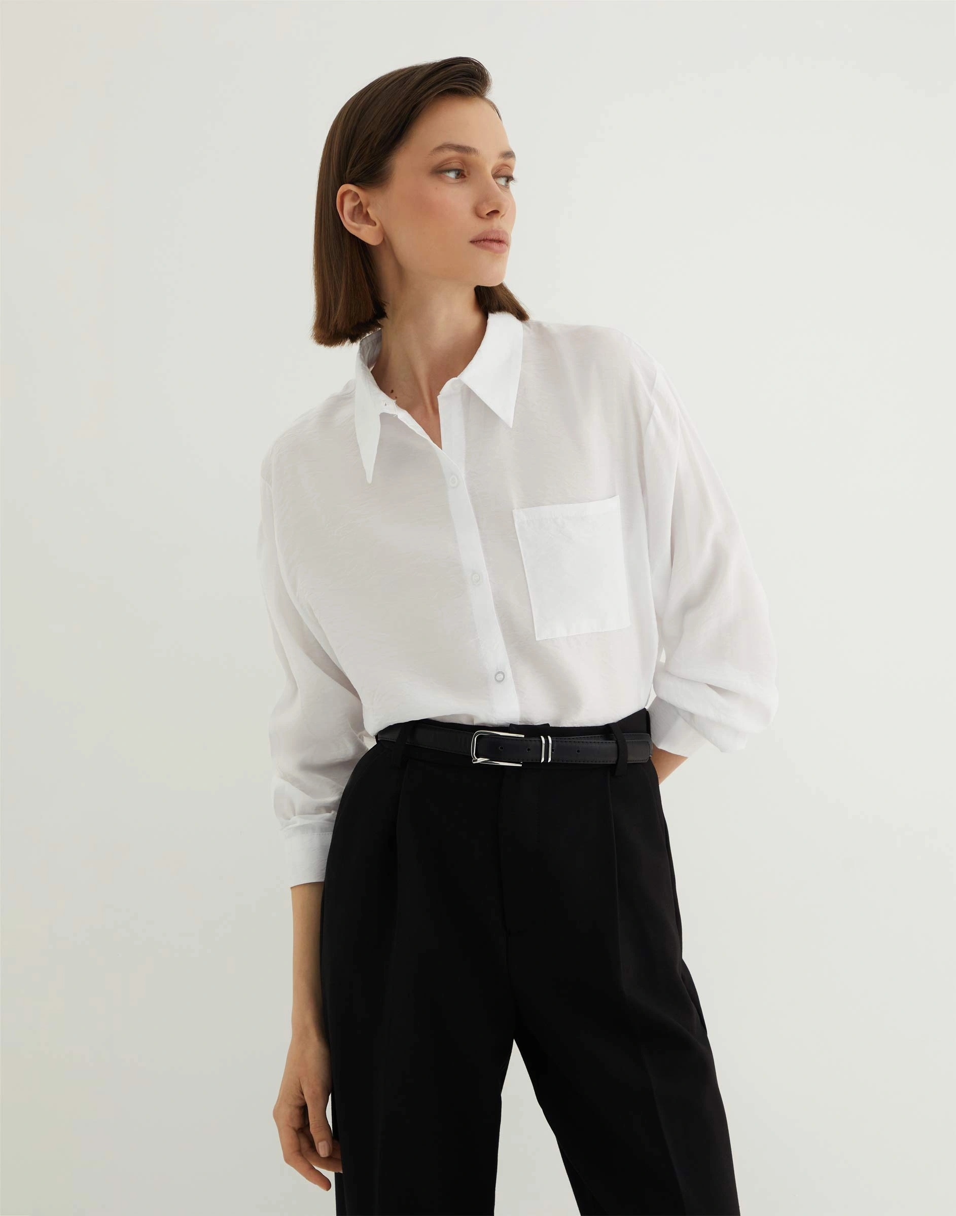 Белая свободная рубашка с нагрудным карманом Gwt004825-1