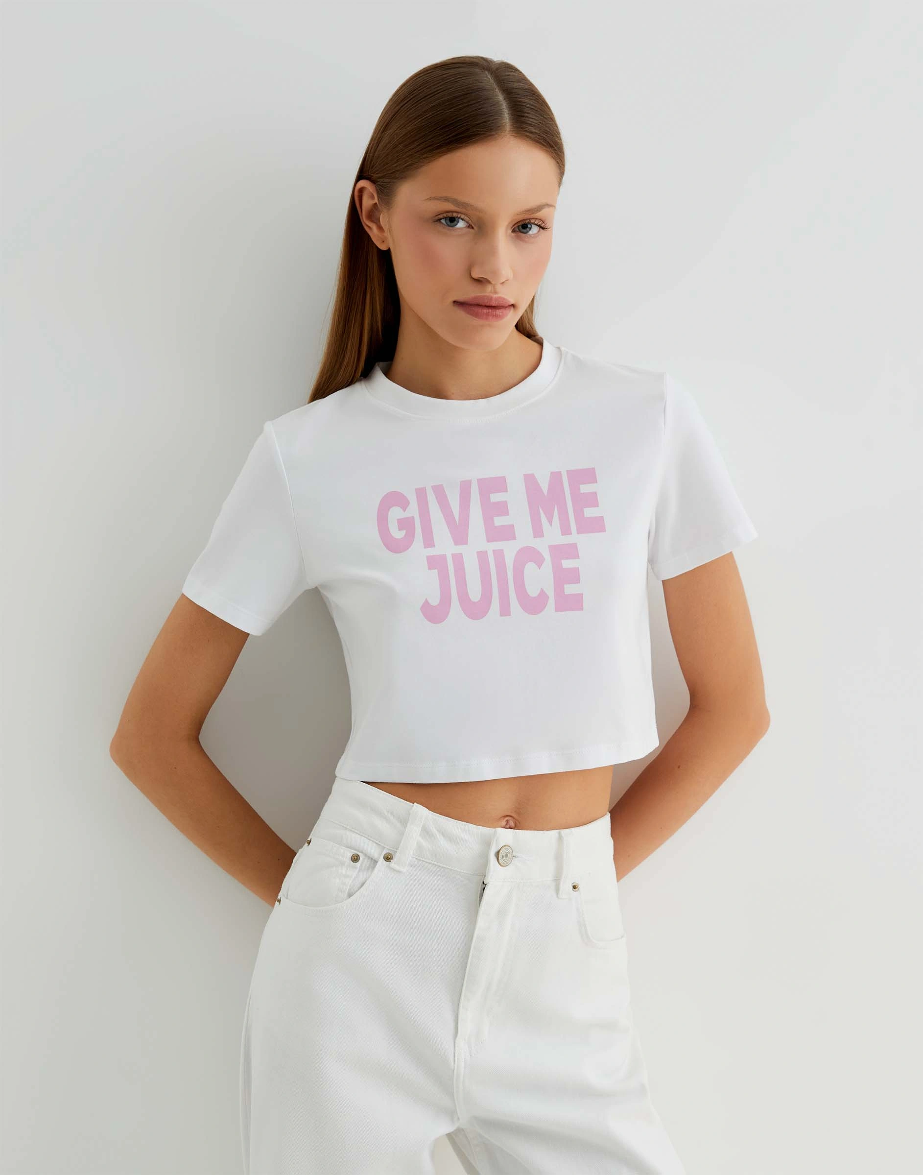 Белый облегающий кроп-топ с принтом Gkt026922-1