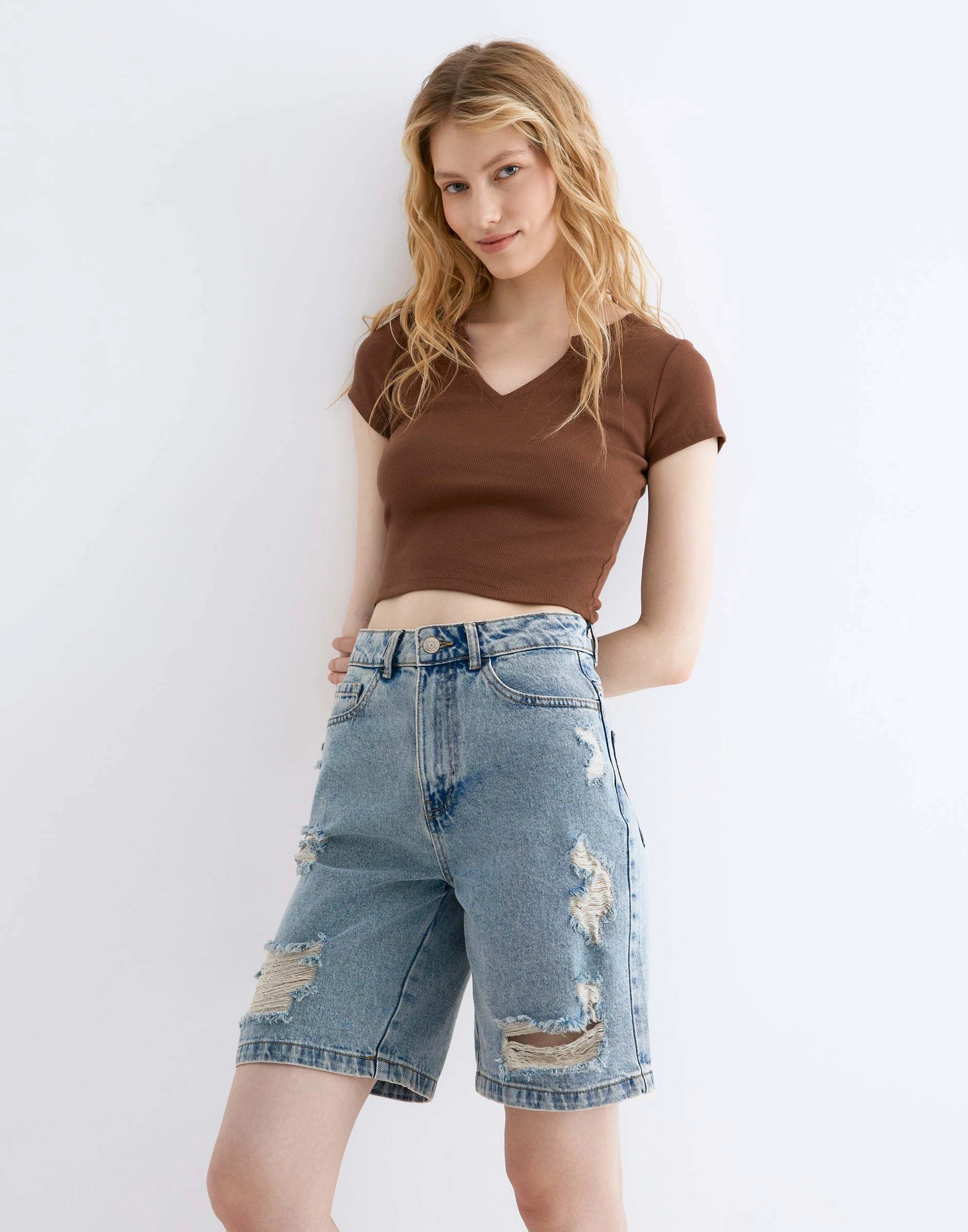 Джинсовые шорты Bermudas с рваным дизайном Gsh013083-1