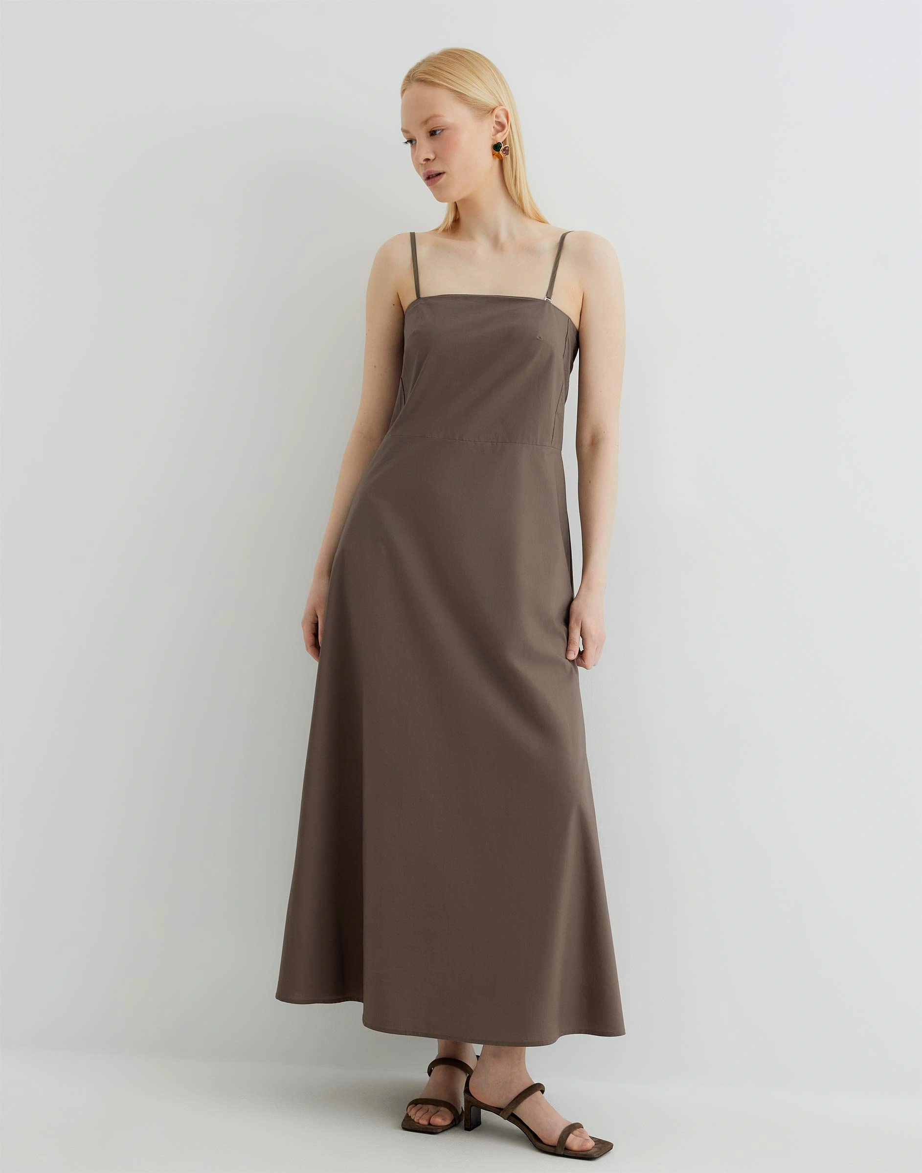 Коричневый расклёшенный сарафан макси Gdr030208-2
