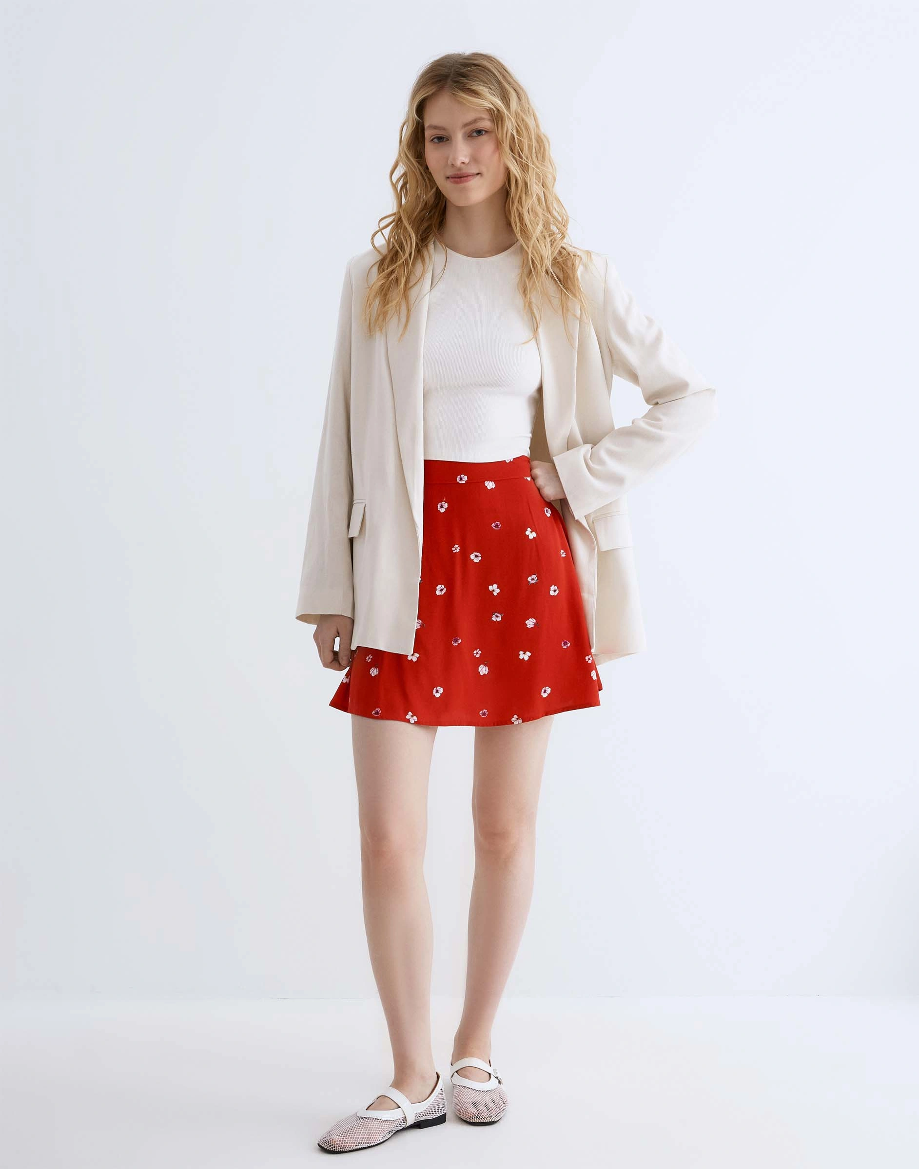 Красная юбка-трапеция с цветочным принтом Gsk019787-1