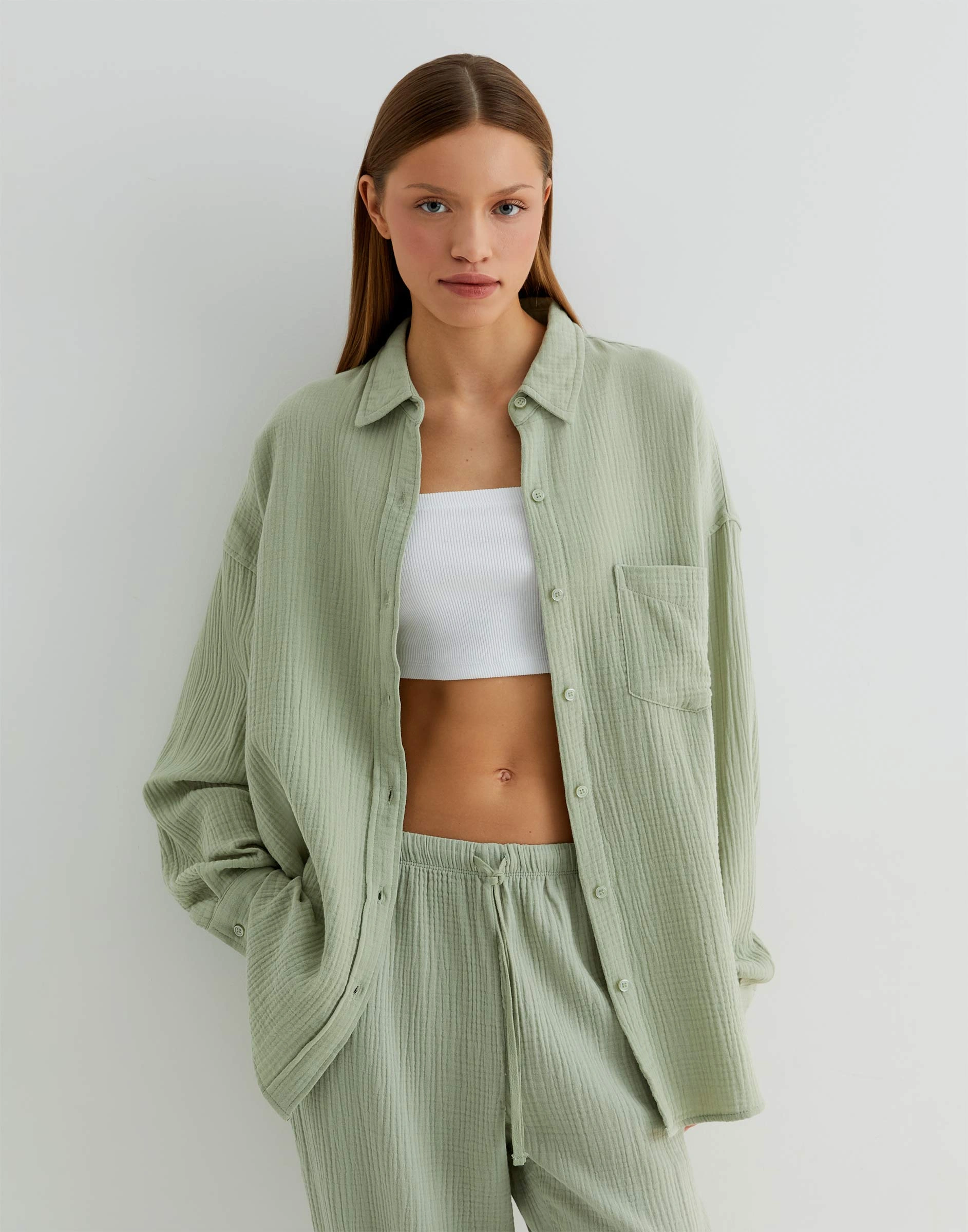 Оливковая рубашка oversize из муслина Gwt004874-3