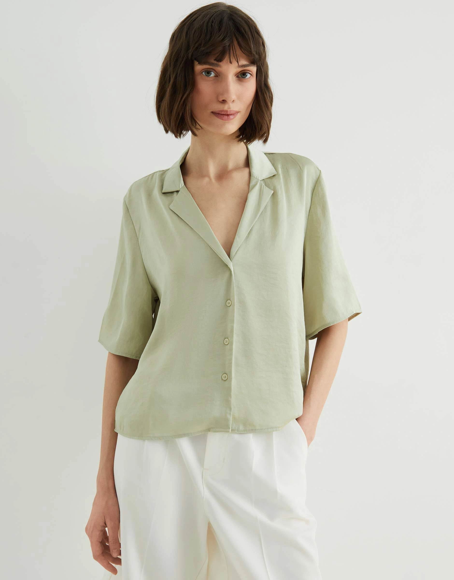 Оливковая сатиновая рубашка с коротким рукавом Gwt004590-2