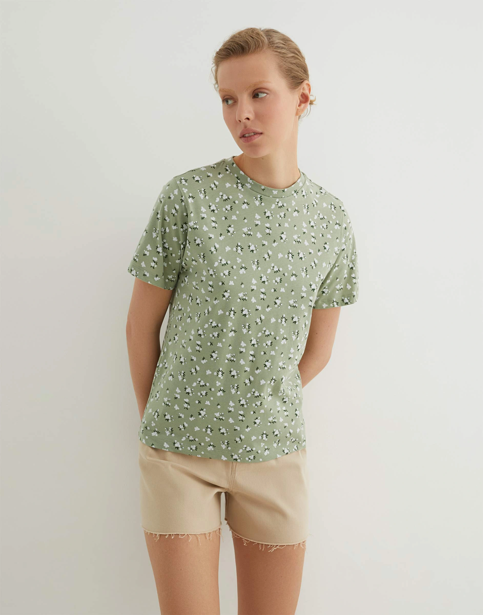 Оливковая футболка с цветочным принтом Gkt027075-1