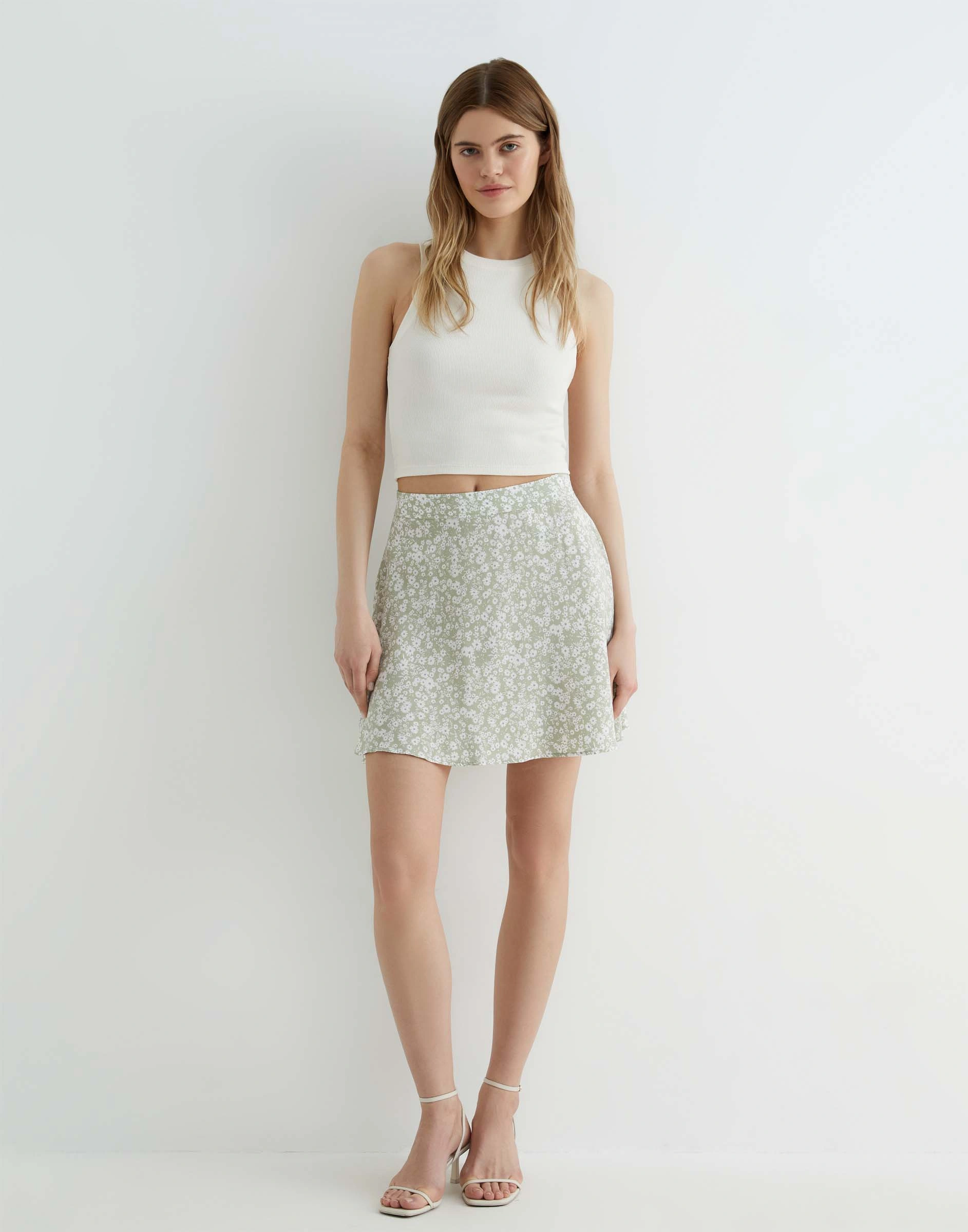 Оливковая юбка-трапеция с цветочным принтом Gsk019787-2